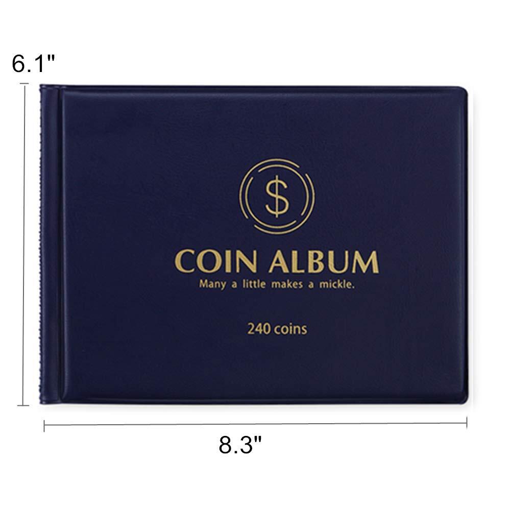 MUDOR 240ポケットのコインアルバム、3 cm未満のコイン直径に適したコインコレクション用品(青色)