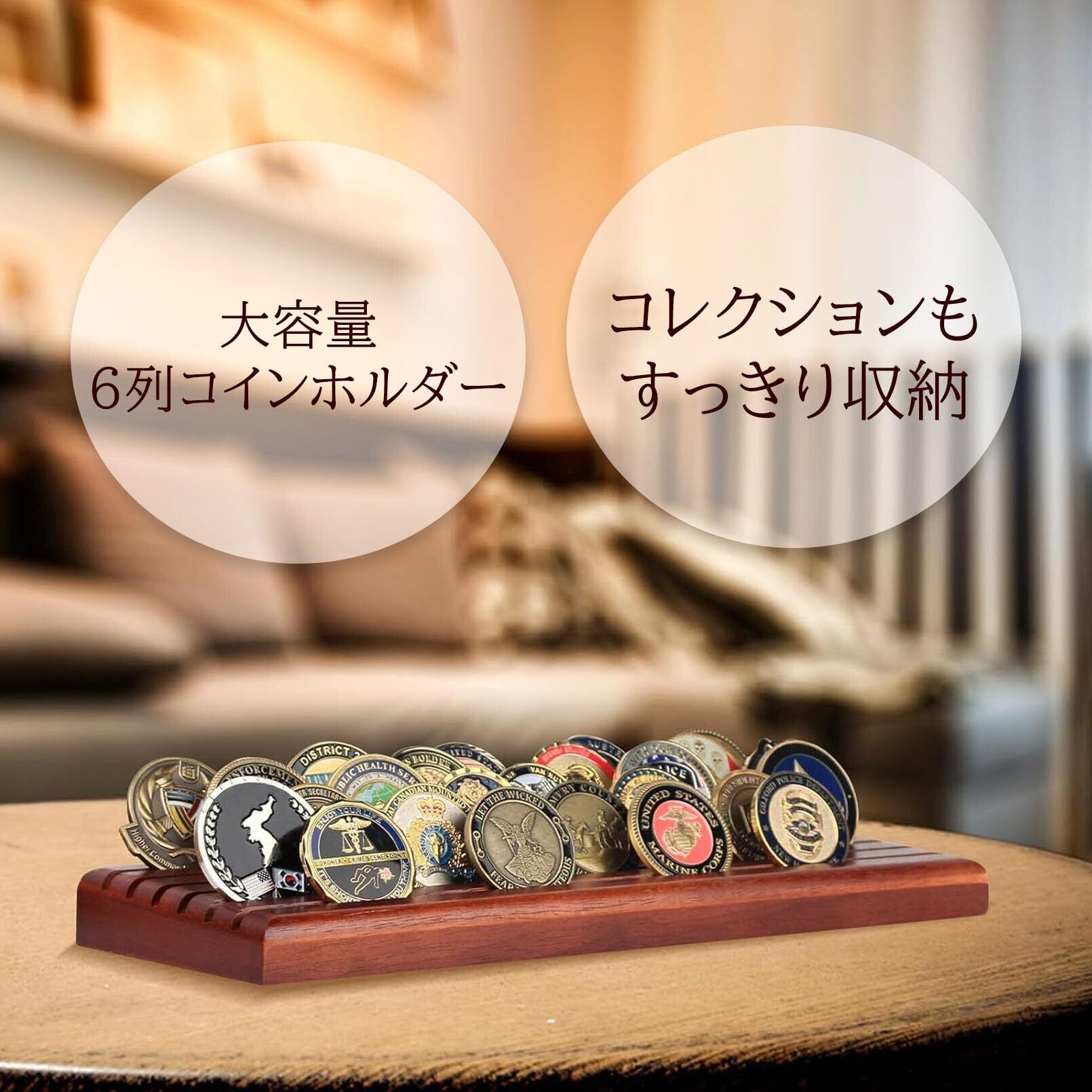 【実用的で美しいケース◎】木製のディスプレイケースです!コインを6列収納することができて、じっくりと眺めやすいです。おしゃれなブラウンカラーで、卓上にコンパクトに置くことができます。