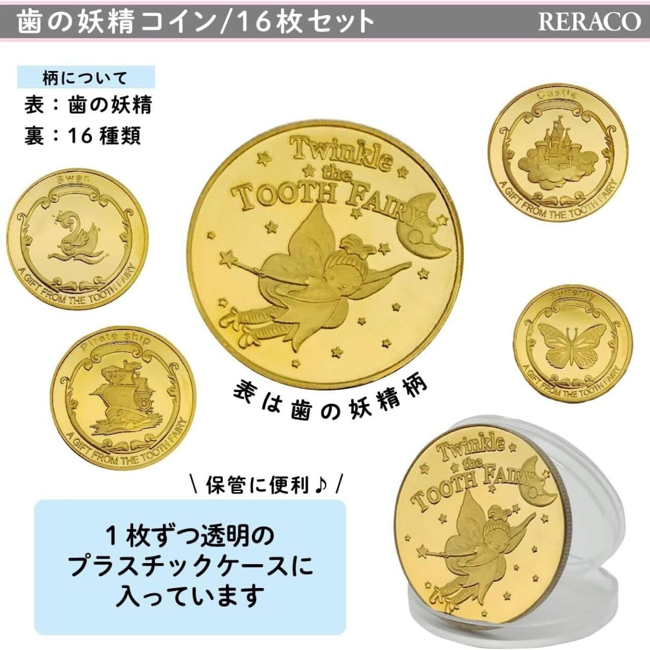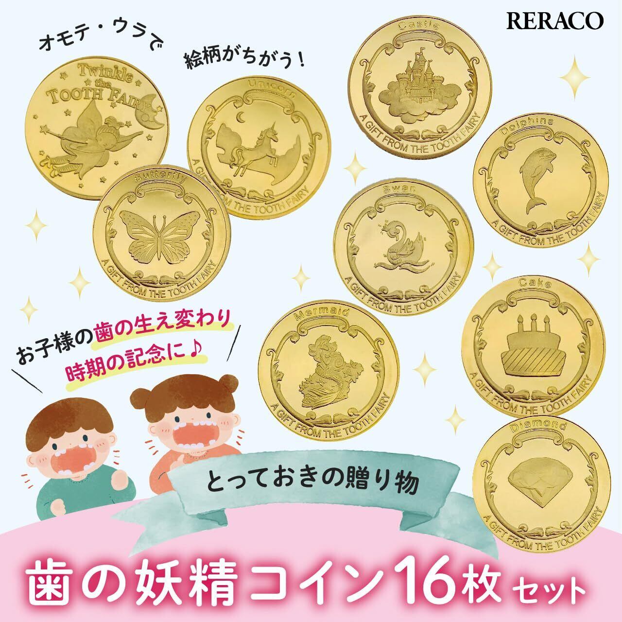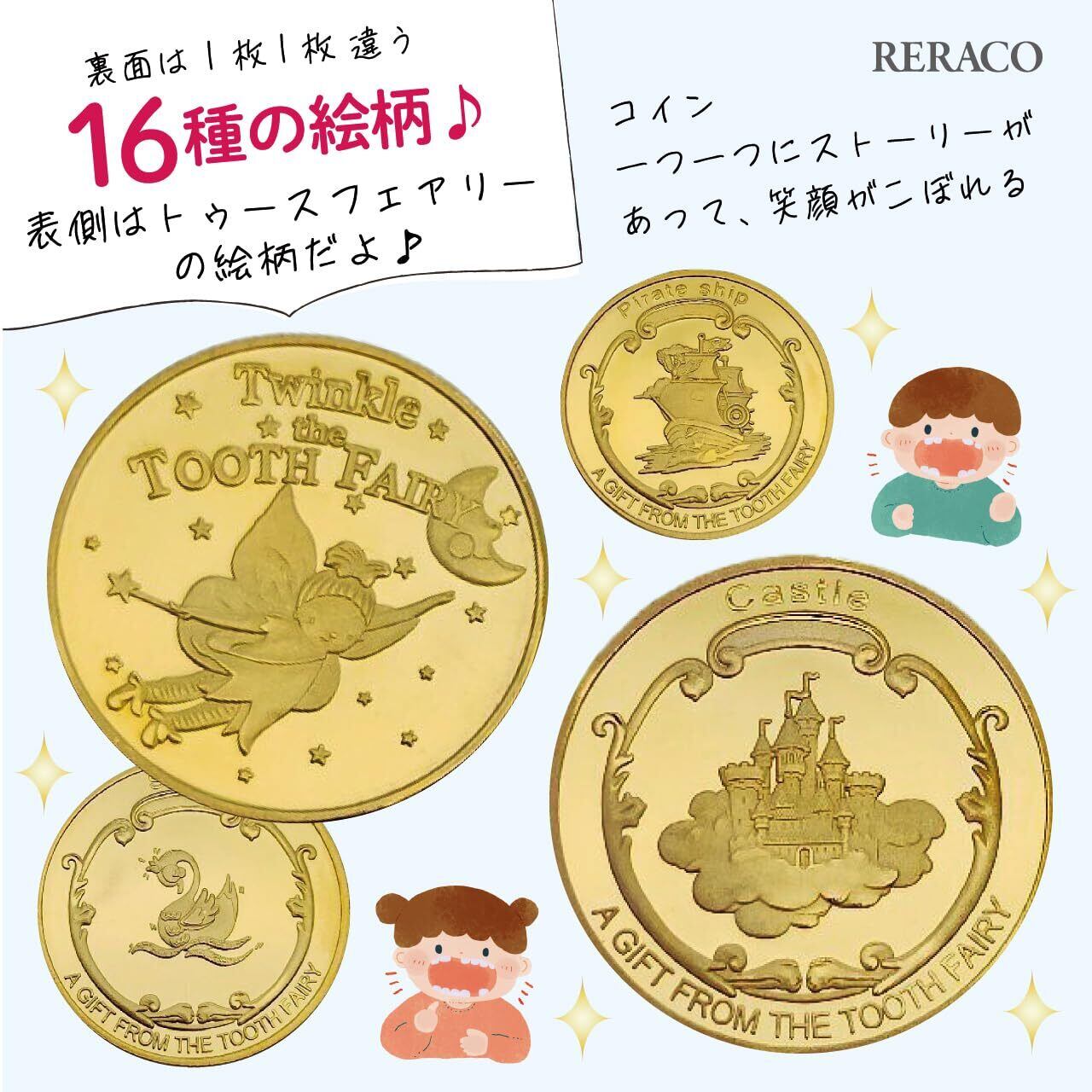 【保育士さん推薦】RERACO 歯の妖精 コイン バラエティ 歯 妖精 乳歯 トゥースフェアリー 金貨 記念 歯の妖精コイン 歯と交換するコイン こども