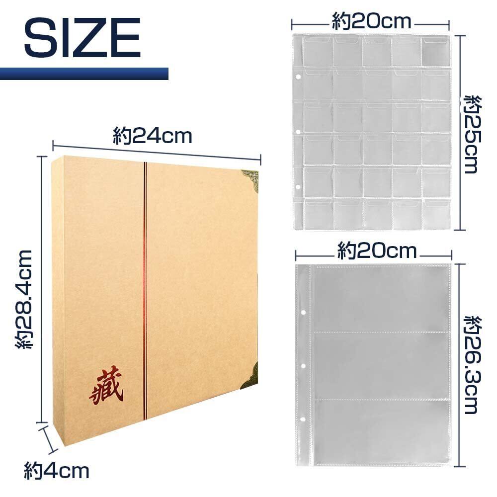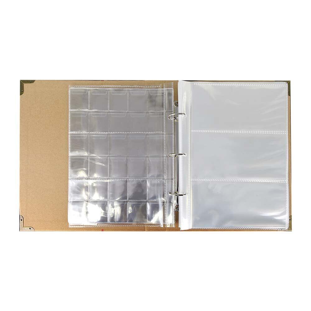 ノンブランド品 コレクションファイル バインダー式 リフィル付属 落下防止ポケット 記念硬貨 古銭 紙幣 ブラック 28.4cm×24cm×4cm