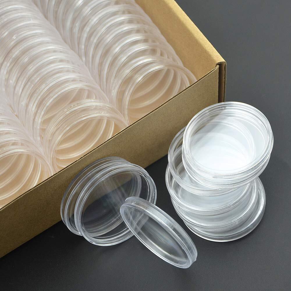 パッケージ内容:紙箱。 100 x 透明なプラスチック製の丸いコインホルダー収納ボックス。 あなたがたくさんのコインを保管するのに十分です。