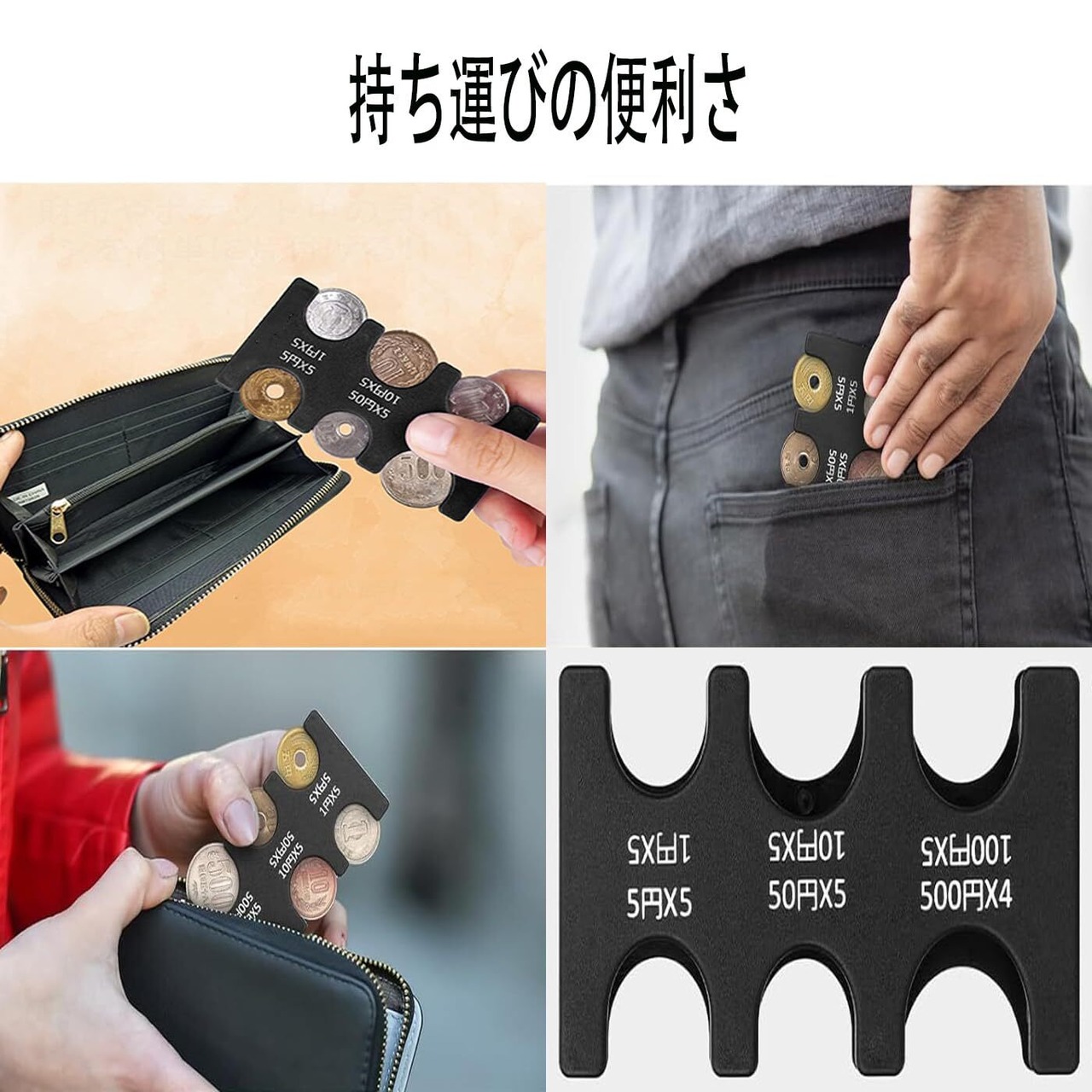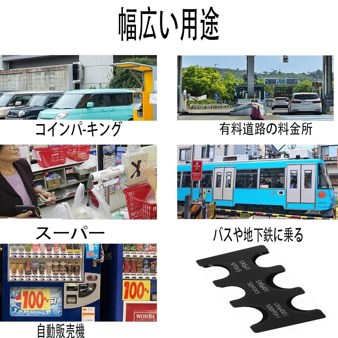 【2830円のコインホルダー】このコインホルダーは日本の通貨に特化した設計で、500円玉を4枚、100円・50円・10円・5円・1円玉をそれぞれ5枚収納することができます【簡単取り出し】片手操作に対応しており、持ち運びに便利なサイズのこのコインホルダーは、バッグなどに収納し、使用時には片手で持って指で硬貨を滑らせることで簡単に取り出すことができます一目でどの硬貨かがわかるため、財布や小銭入れをかき回す手間が省けます【落下防止】内蔵されたストッパーにより、硬貨を最大数収納していても、最小数しか入っていなくても、硬貨がこぼれ出しにくい設計ですこの特徴は非常に優れており、硬貨が1枚だけ入っている場合でも本体から脱落することなく、硬貨が落ちる心配がありません硬貨の散乱を防ぎ、取り出す時もスムーズに行えます【支払い時の落ち着き】所有する硬貨の種類と数量が一目でわかり、レジでの支払いがよりスムーズになります財布を開けて硬貨を探す煩わしさがなく、支払い時間を大幅に短縮できます【軽量かつ頑丈】コインホルダーのサイズは約9.2cm x 4.5cm x 1.2cmで、耐衝撃性と耐久性に優れたABS樹脂製です