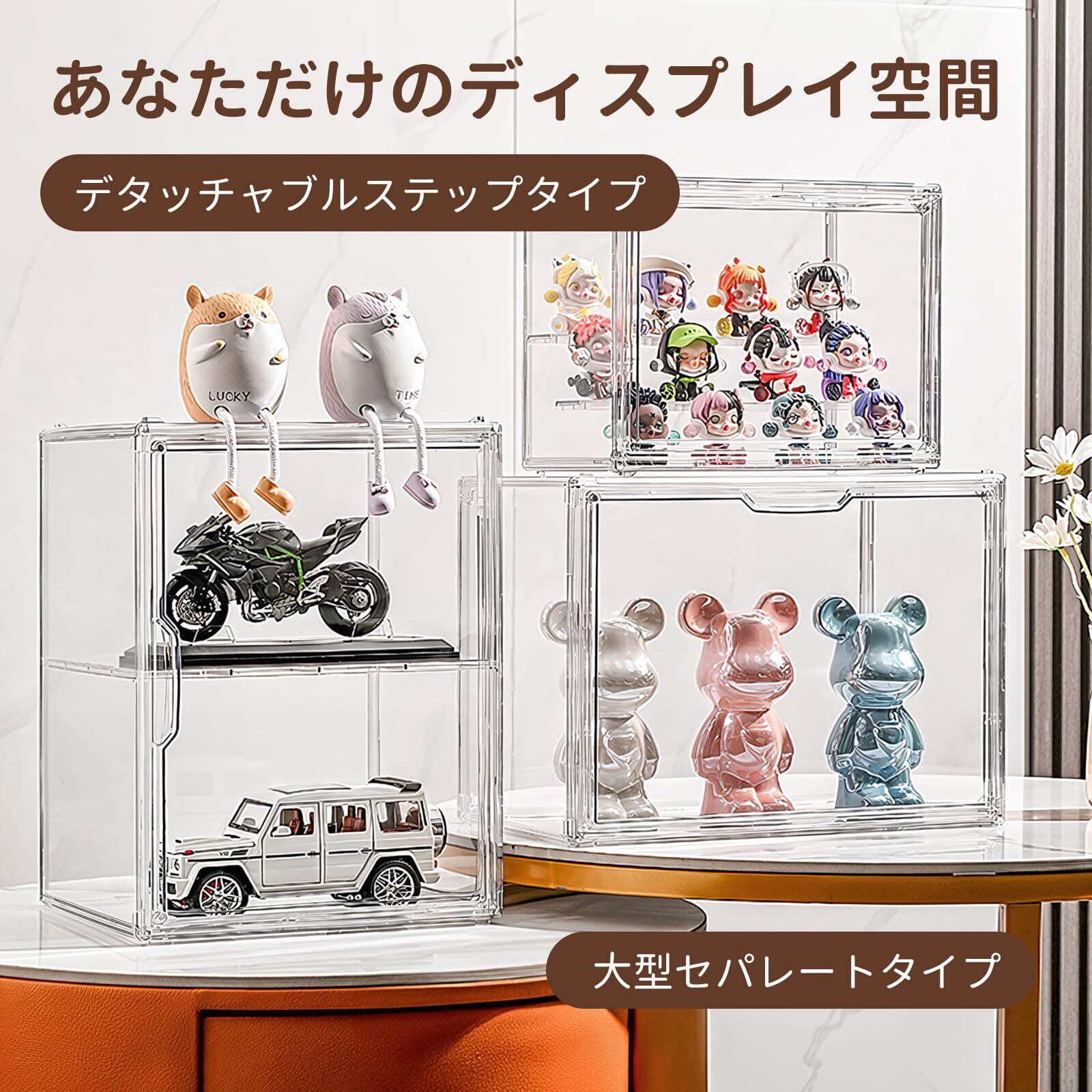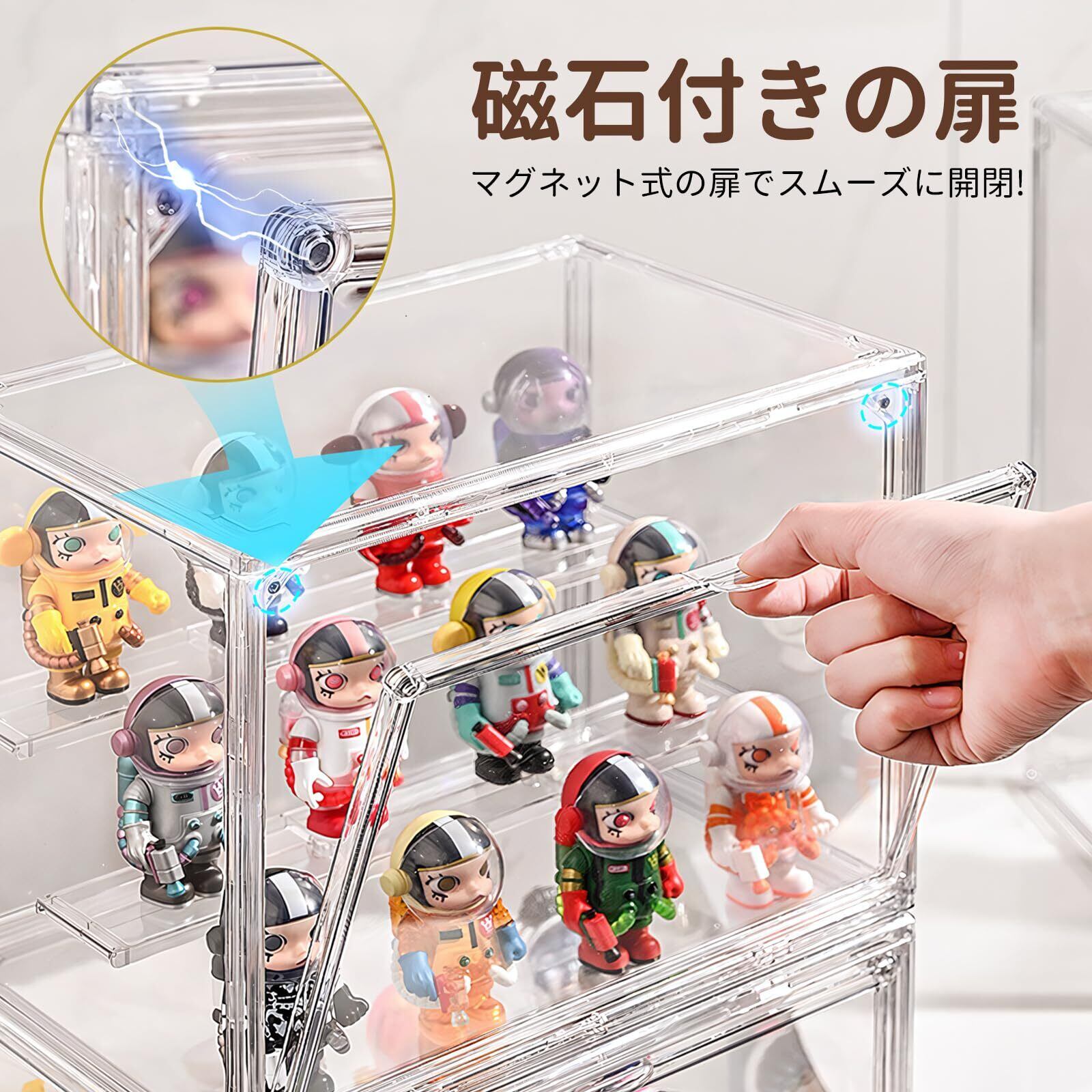 【仕切り板で自在収納&積み重ね可能】フィギュアケースは取り外せる可能2枚の仕切り板で2段階の高さ調節が可能。複数のコレクションを自由に組み合わせられ、様々なサイズのフィギュア収納に最適です。さらに、収納にぴったりの積み重ね式ケース。コレクションケースは接着剤不要の簡単組み立て設計で、お好みに合わせて自由に積み重ねてご利用いただけます。