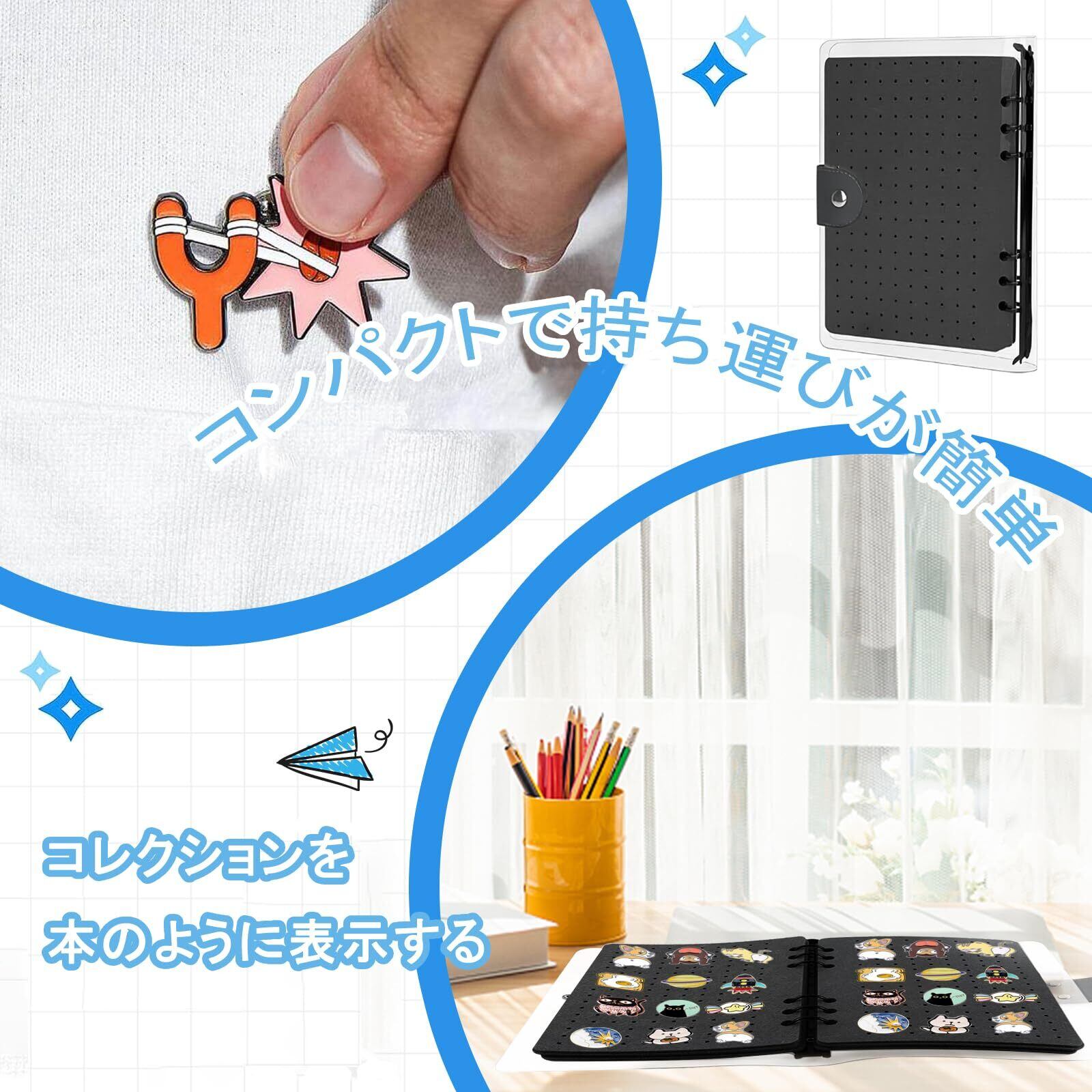 ピンディスプレイホルダー 缶バッジディスプレイバインダー ピンバッジ ケース ピン収納ファイル 防水クリアPVCカバー付き エナメル ブローチ 8ページ 350個コレクション用穴 ピン缶バッジ 収納ケース イヤリングオーガナイザーブック
