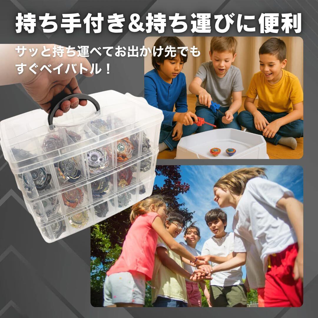ベイブレード ケース 30個収納 クリアケース 収納ボックス パーツ入れ プラスチック製 持ち運び便利 仕切り可 3段分離 半透明 小物収納 部品整理 持ち手付き ギフト