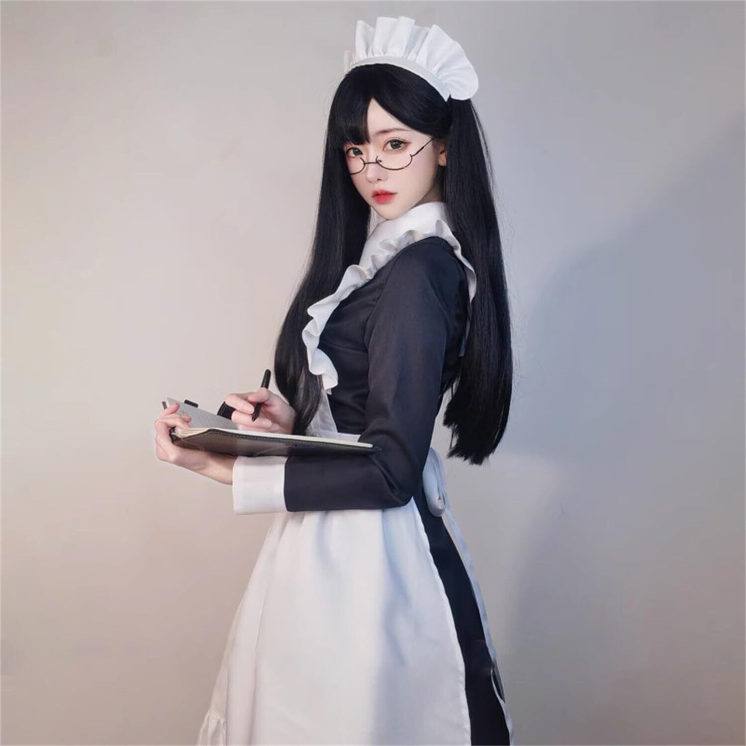 [harukita] メイド服 英国風 長袖 黒白 ロング セクシー コスプレ メイド服 3点セット ロリータ ワンピース 女性 男性用 長袖 文化祭 仮装 衣装 可愛い 人気 演出服