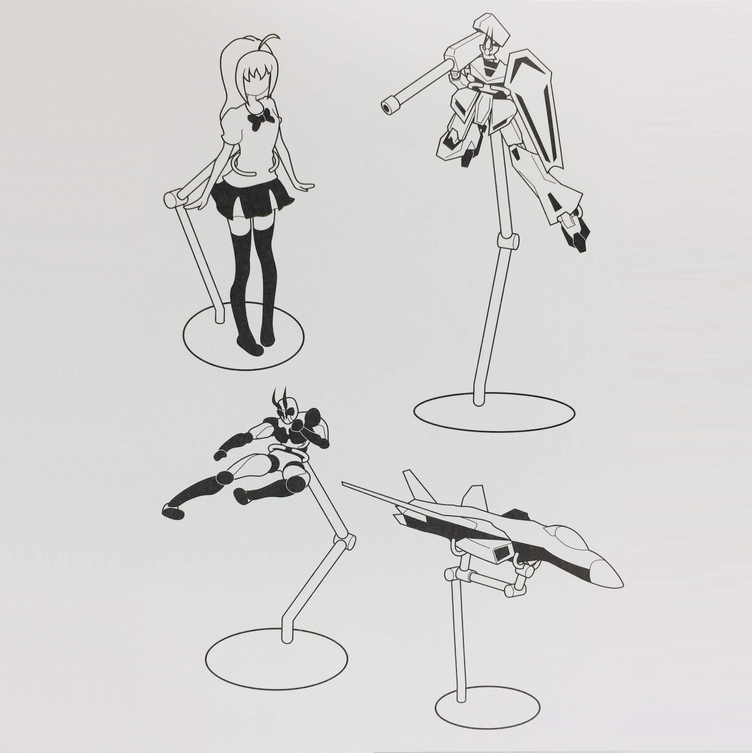 組み立て方により10cm~30cm程の大きさの物の自立補助、アクションポーズでのディスプレイが可能です。