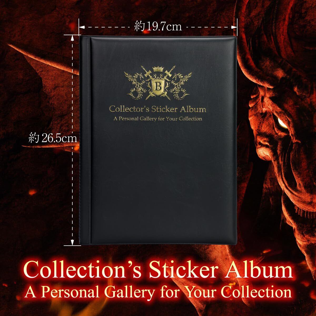 ビックリマンチョコ・シールウエハース等ファイル 手帳型 大容量 最大480枚 保管 コレクション 鑑賞用 傷防止 レザー調 スリーブ可 48mm/52mm対応 (ブラック)
