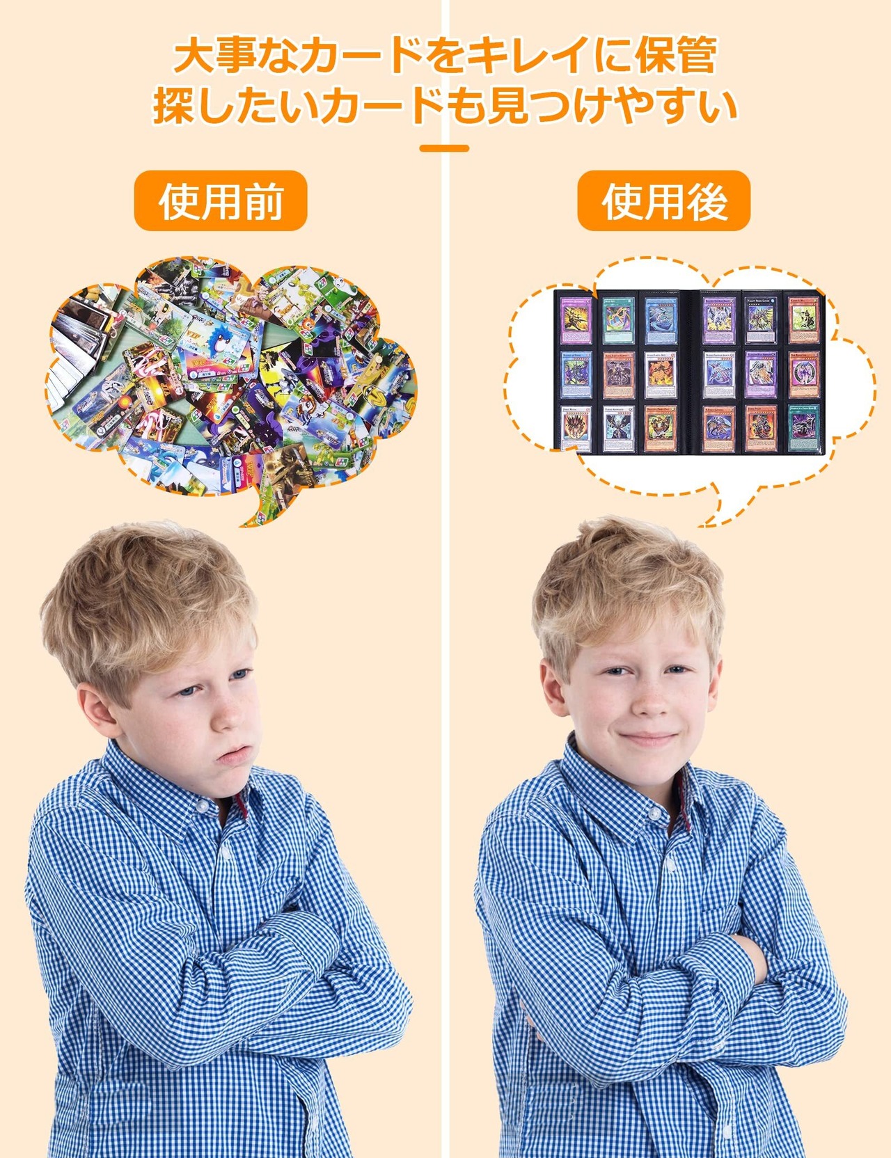 【高品質素材】トレカファイルの表面は防水PP素材のため、汚れにくく、手触りが良く高級感があり、外部の衝撃からしっかり守り、すべての汚れを拭き取りやすくなります。内側のカードスリーブは透明なポリプロピレン製で、耐久性・防水性・防塵性があり、非常に丈夫で、壊れにくく、カードの色あせや汚れから完全に保護します。