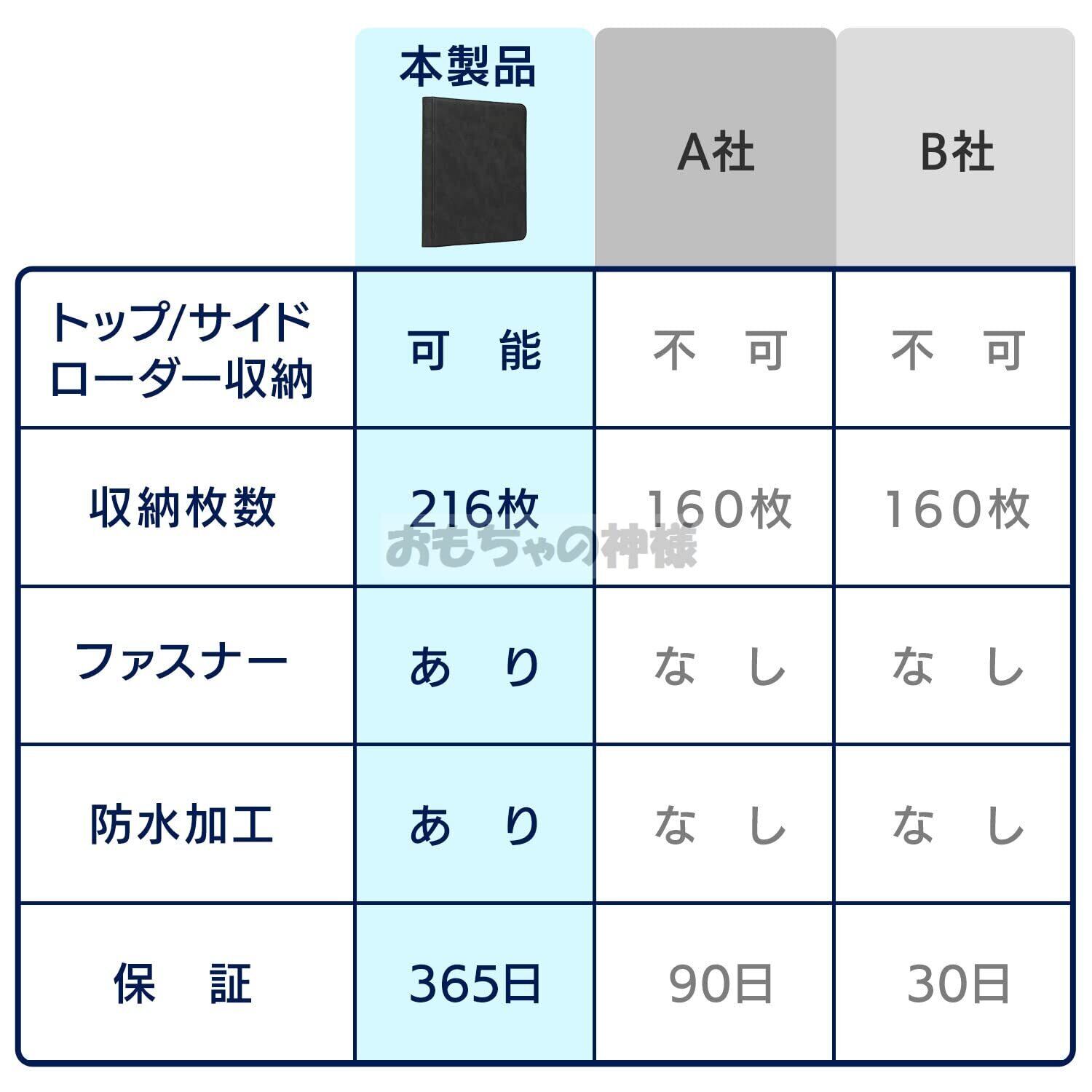 【製品の特徴】トップローダー/サイドローダーに入れたままトレカを保管できるファイル。12ポケットは1P12枚収納(288枚収納)、9ポケットは1P9枚収納(216枚収納)、4ポケットは1P4枚収納(112枚収納)。