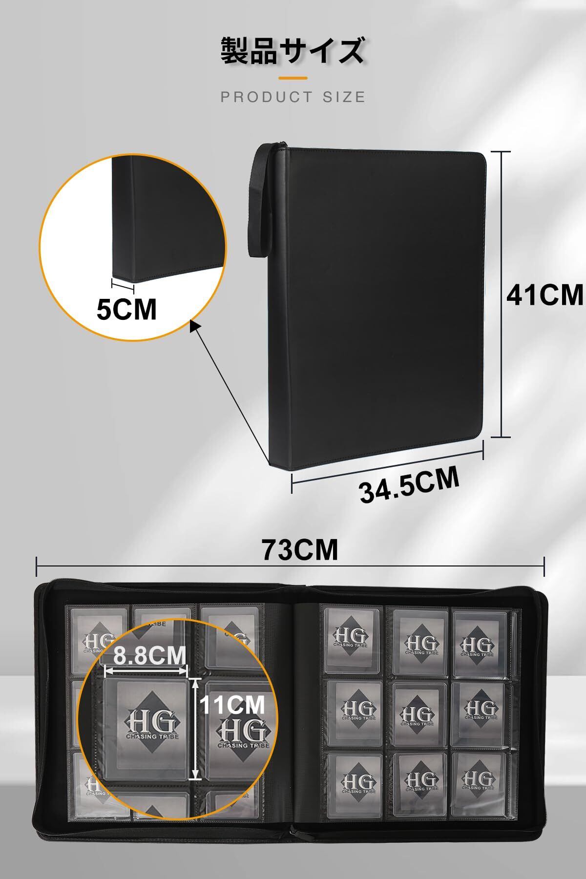 HG CHASING TRIBE カードファイル トレーディングカードホルダー PU 表面の防水性と耐摩耗性のクリップ 9ポケット 360枚横入れ収納 大容量 カードアルバム 両面コレクション スリーブ対応 コレクションファイル (黒, トップローダー用ファイル)