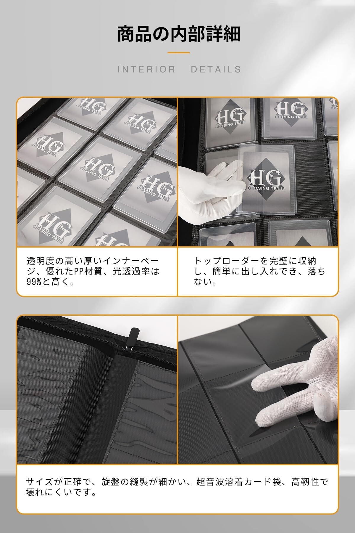 【新春セール】HG CHASING TRIBE カードファイル トレーディングカードホルダー PU 表面の防水性と耐摩耗性のクリップ 9ポケット 360枚横入れ収納 大容量 カードアルバム 両面コレクション スリーブ対応 コレクションファイル (黒, トップローダー用ファイル) | wakuwakuland
