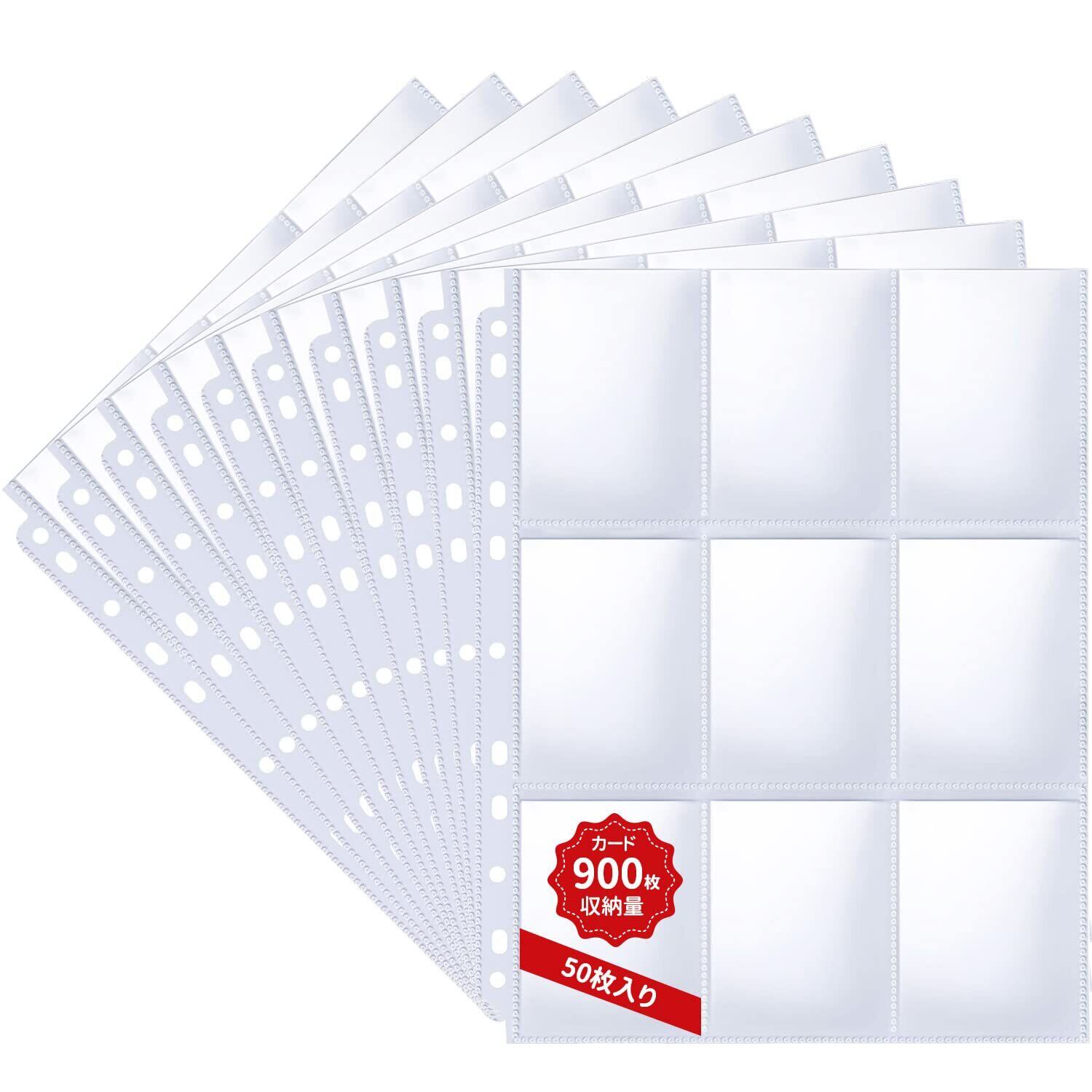 LIUDU カードファイル トレカ ファイル バインダー 50枚入り 9ポケットリフィル カード収納量900枚 2穴 3穴 4穴対応 ポケットサイズ6.8×9cm 両面収納 素材が透明 を集める スターカード コレクションファイル (50枚入り)