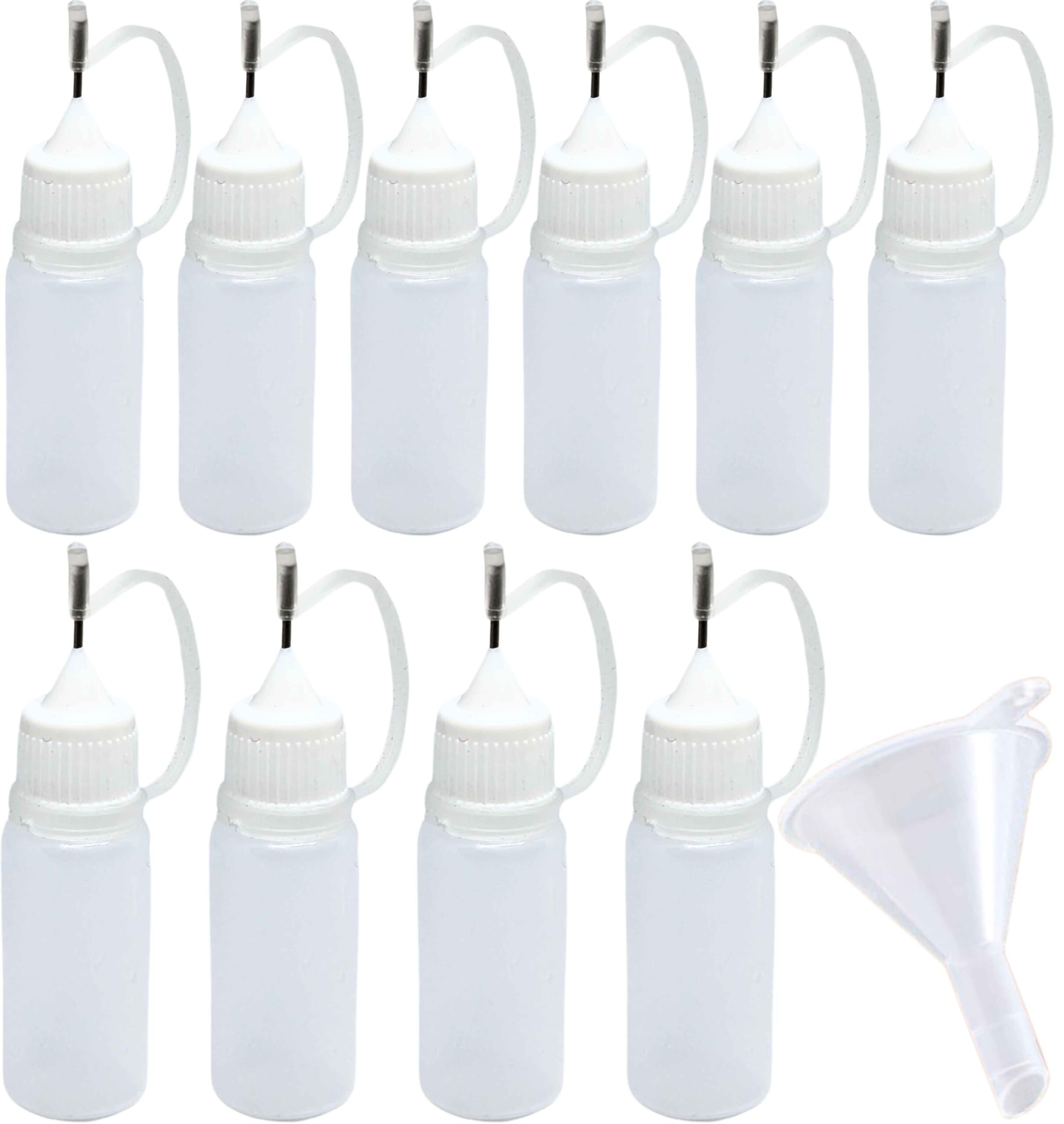【数量限定】ニードルボトル 全8サイズ [5ml/10ml/15ml/20ml/30ml/50ml/100ml/120ml] 【MADE IN JAPAN】 ドロッパー ボトル 10本 ろうと付 (10ml) | wakuwakuland