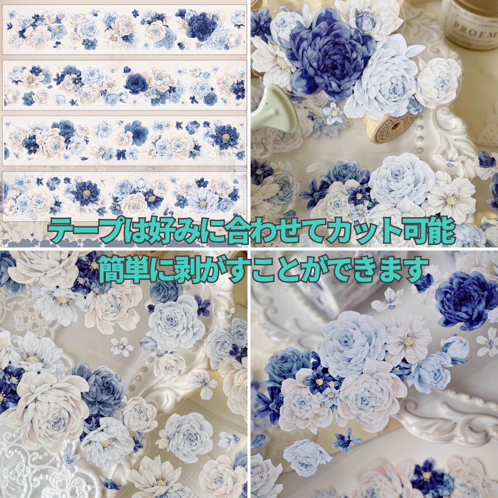 【数量限定】[HapiChapi] 大輪 花 柄 マスキング テープ 薔薇 牡丹 PET デコレーション 手帳 DIY ギフト コラージュ ((薔薇ブルー)+(牡丹ピンク)各1巻 1セット) | wakuwakuland