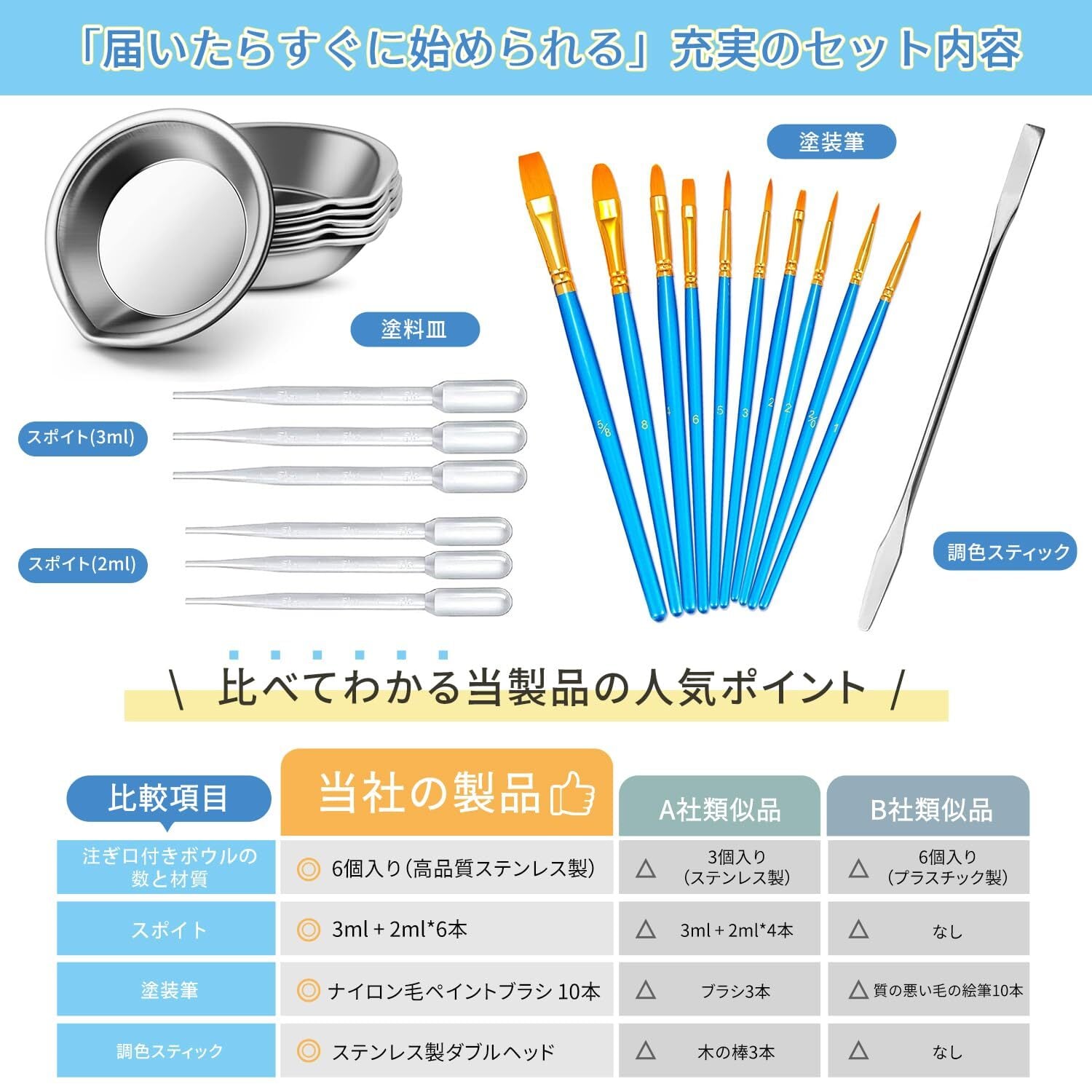 ✨【付属工具】高精度スポイトセット:2mlサイズと3mlサイズのスポイトを各3本ずつ、合計6本を同梱。正確な塗料の計量が可能で、色の微調整や混色作業をサポートします。少量の塗料も無駄なく使用できます。