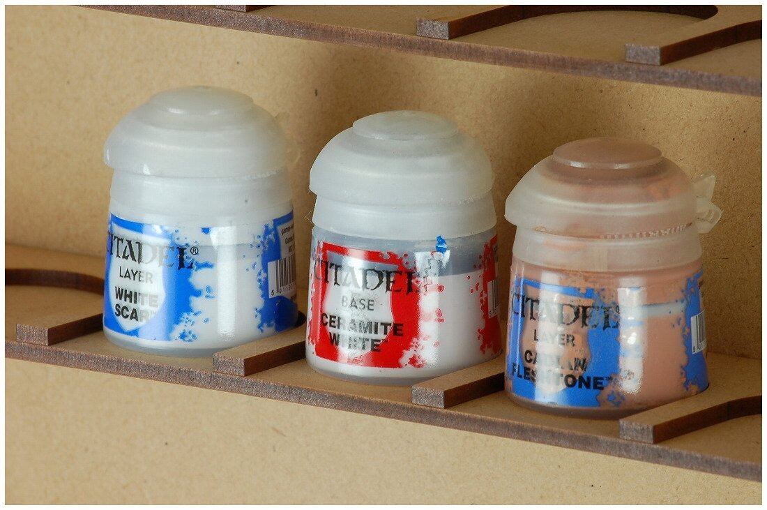 塗料を縦に収納でき奥行きが少ないので机の上が有効利用できる優れものです。
