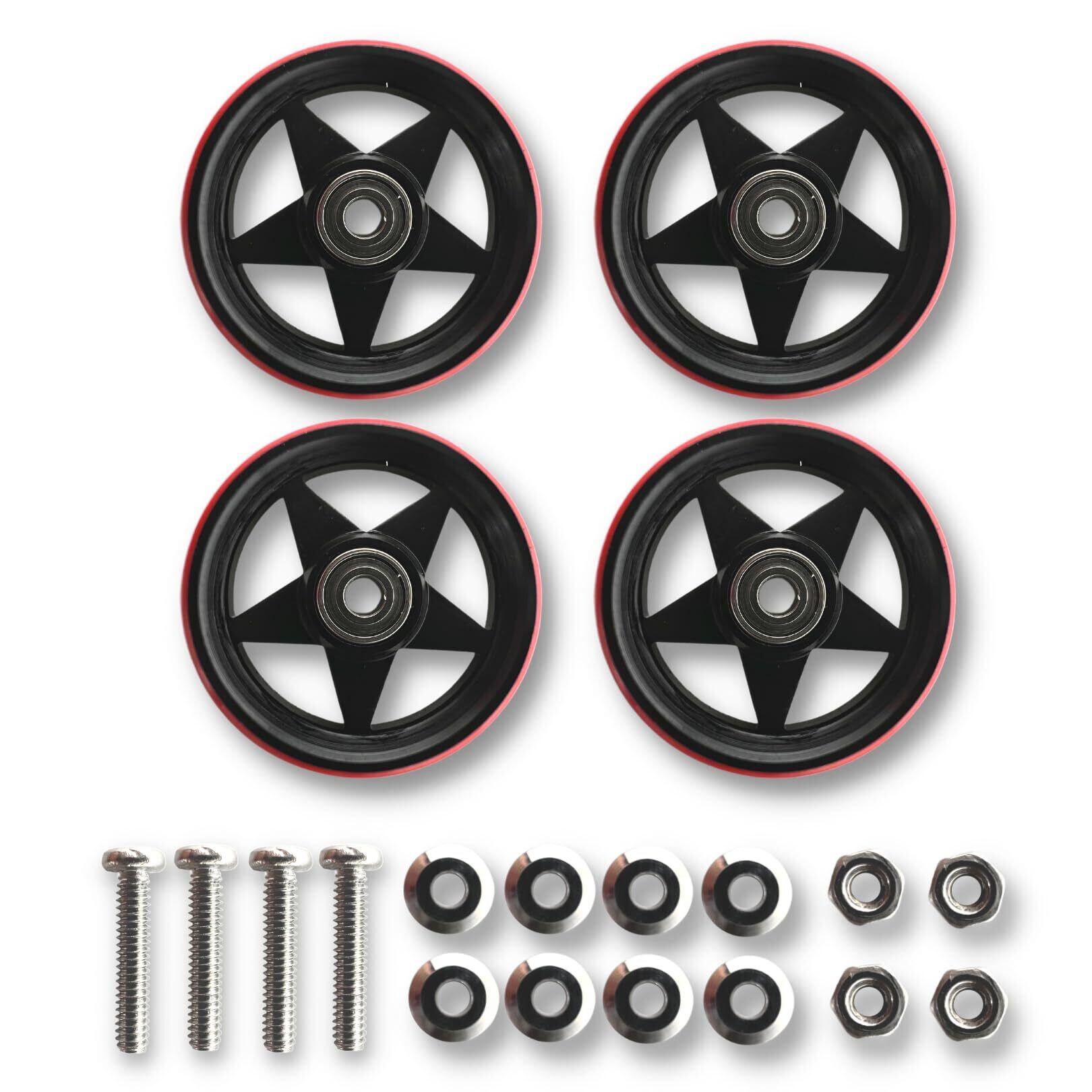 TAGATORON(タガトロン)19mmプラリング付きアルミベアリングローラー4個セット (7. ブラック(赤プラリン))