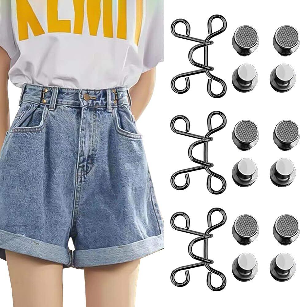 【特価セール】ジーンズ 調整ボタン リベット付き 縫い目ない ウエスト調整ボタン ウエストバックル 取り外し可能ボタン ウエスト 調整 ボタンピン 金属ジーンズボタン 縫製不要 ボタン ジーンズ 取付簡単 ズボン置換 ボタン 交換用 ウェスト調節ボタン サイズ調整 サイズ直し 手芸 DIY (ブラック) | wakuwakuland