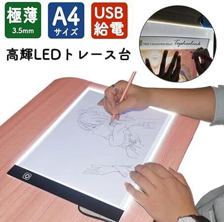 【在庫セール】トレース台 A5 LED 薄型 トレースボード USB 写し絵 ライト 調光 軽量 漫画 イラスト 製図 写経 アニメ トレース ダイヤモンドアート (ホワイト, A4) | wakuwakuland