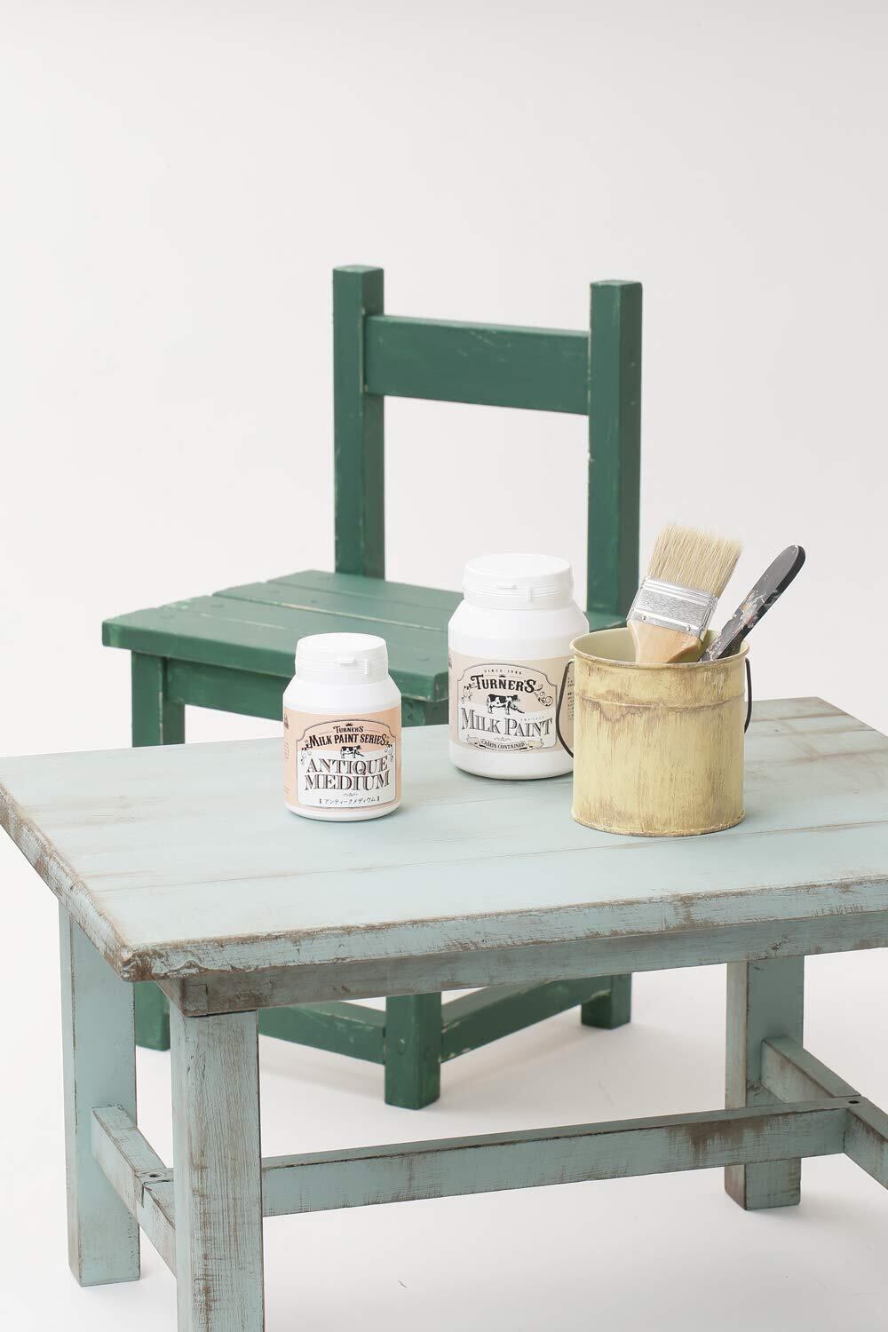 【特長】 ■アメリカ開拓時代、ミルク原料(ミルクガゼイン)を利用した塗料で、家具などを彩色していました。その柔らかい色調が現在も好まれ、森永乳業のミルク原料を使用したターナーミルクペイントが生まれました。アーリーアメリカのやわらかい色調で、乾けば美しい落ち着いた仕上がりに。 ■水性で取扱いも簡単です。 ■1本で1㎡~1.5㎡(2回塗り)が目安です。