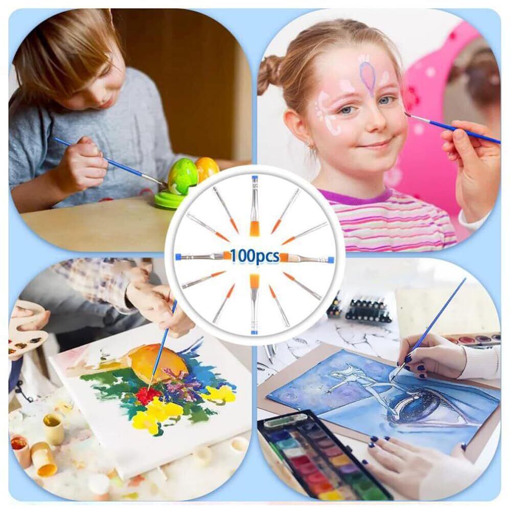 YFFSFDC 平筆 勾線筆 絵筆 100本セット 画材筆 水彩筆 プラモデル 塗装 油絵 水彩画 フィギュア 筆