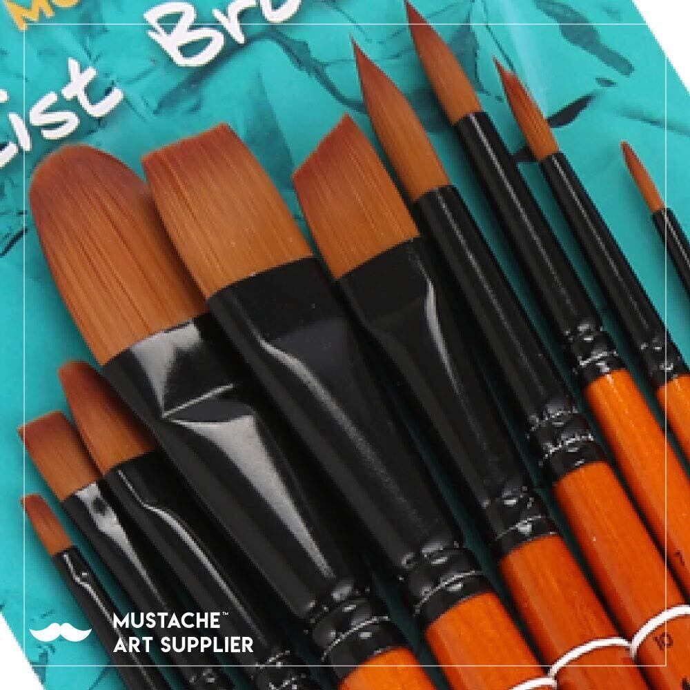 ブラシの品揃え:10個のアーティストブラシセット:フラット形状:1/8 "、1/4"、5/8 "|フィルバート形状:3/8"、3/4 "|円形形状:0、4、7、10 |角度形状:3/4"
