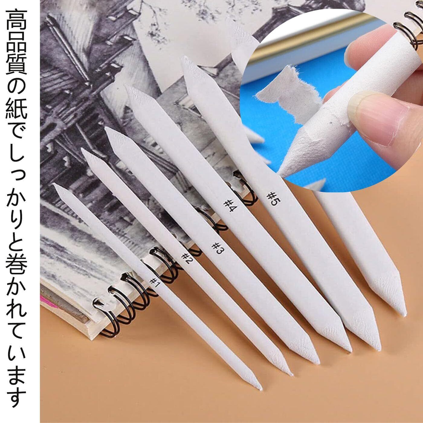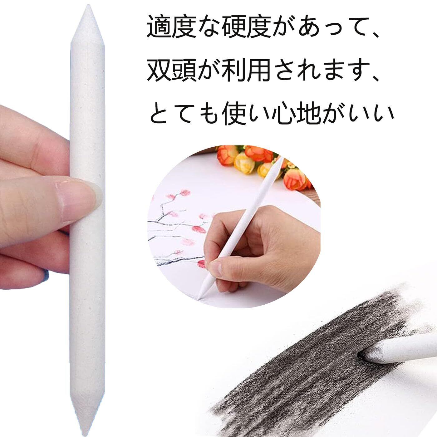 【高品質素材】:高品質な紙を使用して作られた擦筆は、繊細な質感と適度な硬度を兼ね備え、双頭設計で使い勝手が抜群です。デッサンやパステル画の仕上げにおいて、指の代わりに木炭や鉛筆、コンテ、パステルなどの色をぼかしたり混ぜたりすることができます。