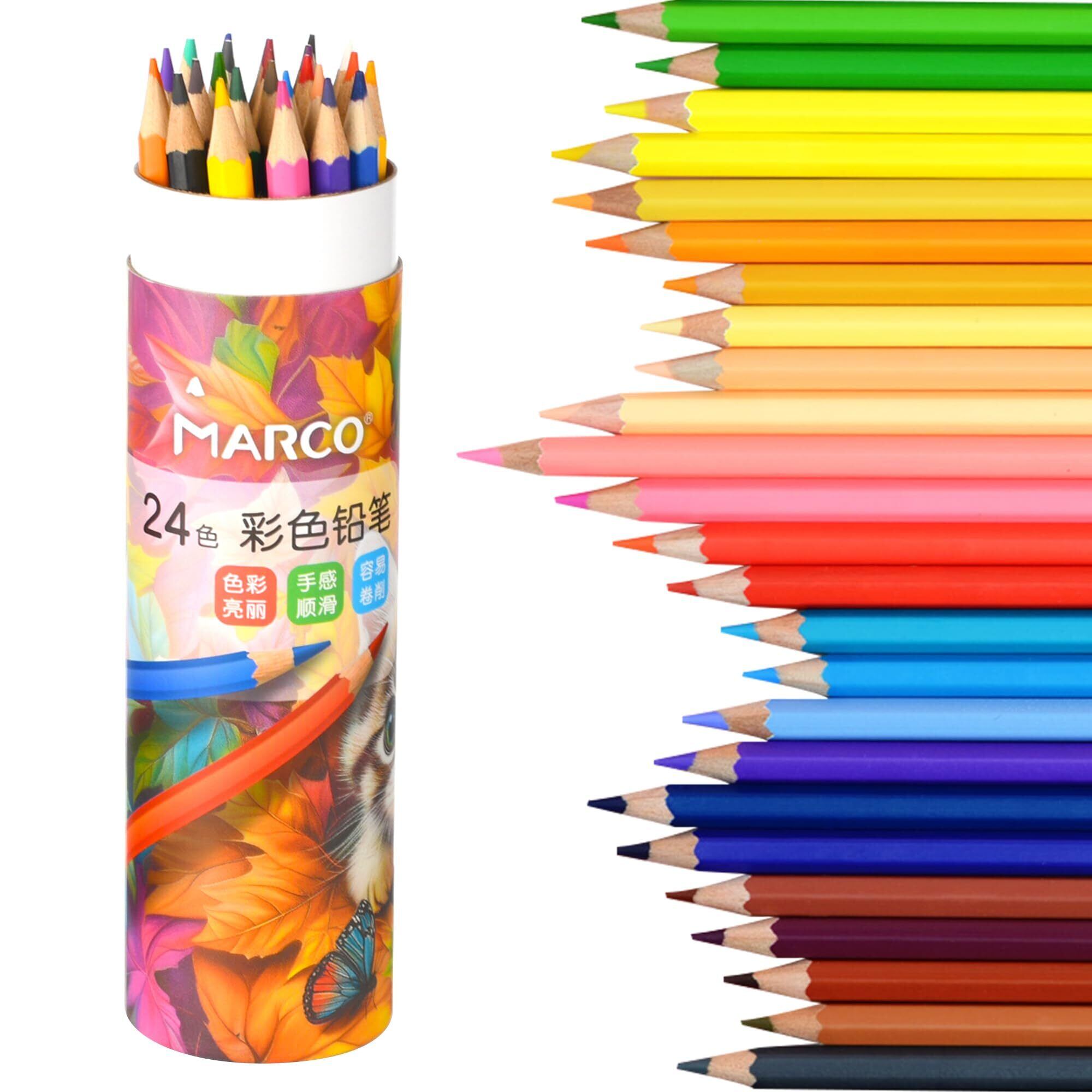 Marco 色鉛筆 油性 24色 塗り絵 芯2.9mm 折れにくい 色鮮やかで手触りが滑らか 発色の良い色えんぴつセット 六角軸 木製 油性いろえんぴつ 学生 、大人、子供、初心者向け絵画セット 携帯に便利(24色 紙筒入り)