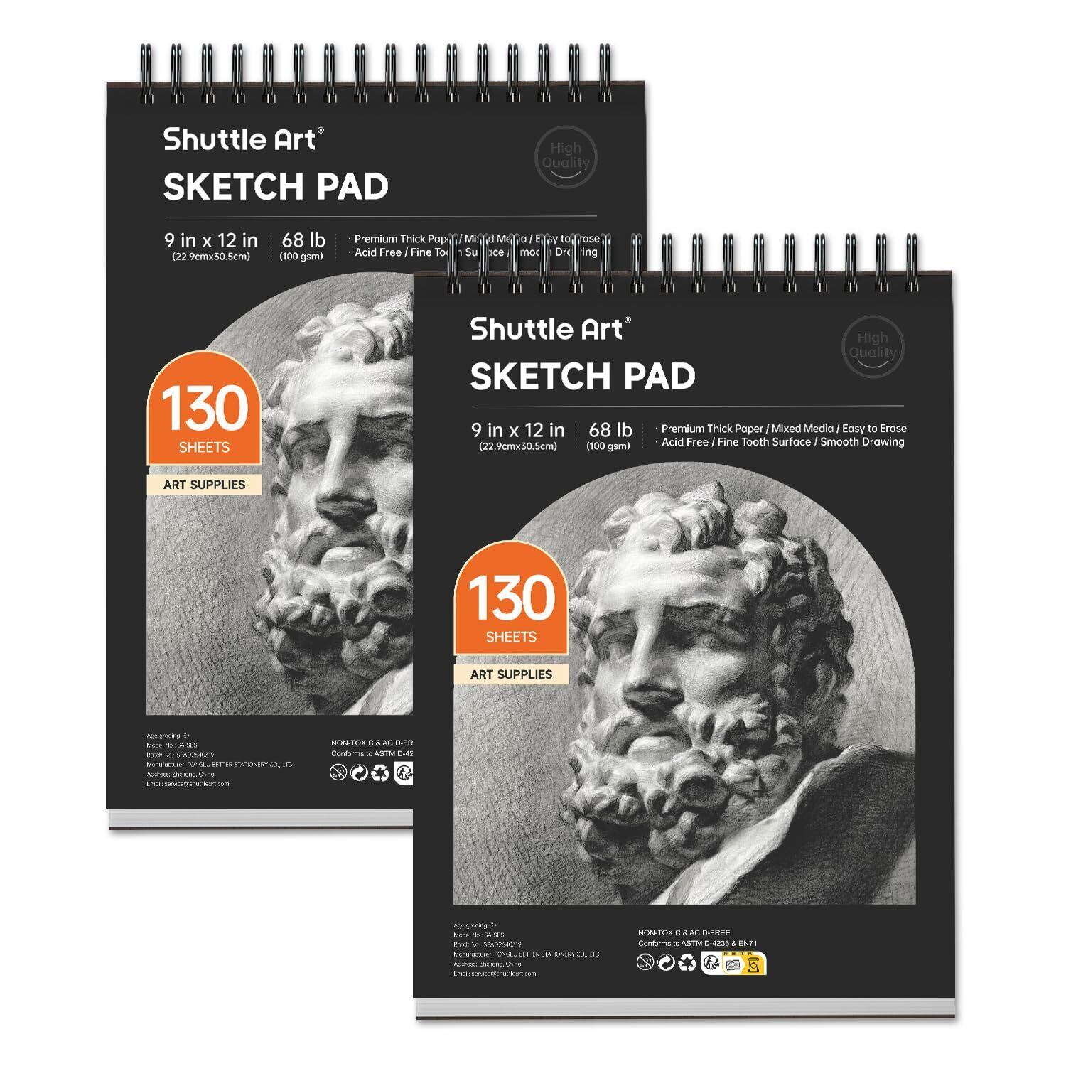 Shuttle Art スケッチブック 130枚 2冊セット スパイラル製本 図案付 画用紙 クロッキーブック お絵かき帳 落書き帳 自由帳 写生帳 サイン帳 メモ帳 ダブルループワイヤ デッサン用紙 フォトブック スクラップブック 画材 紙 中性紙 学校・旅行・野外スケッチ用