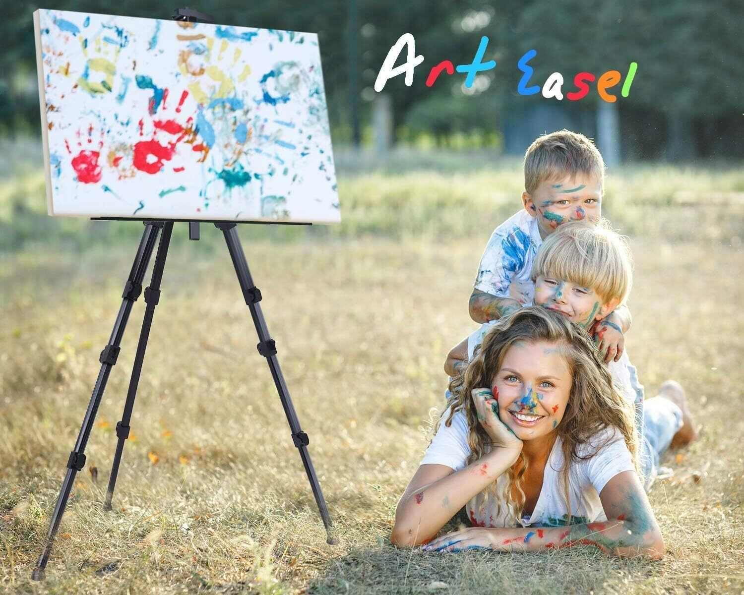 イーゼル メタルイーゼル55-158cm 折りたたみ 高さ調節3段式 展示 装飾 看板 絵画 ポスター 収納袋付き (純黒, M)