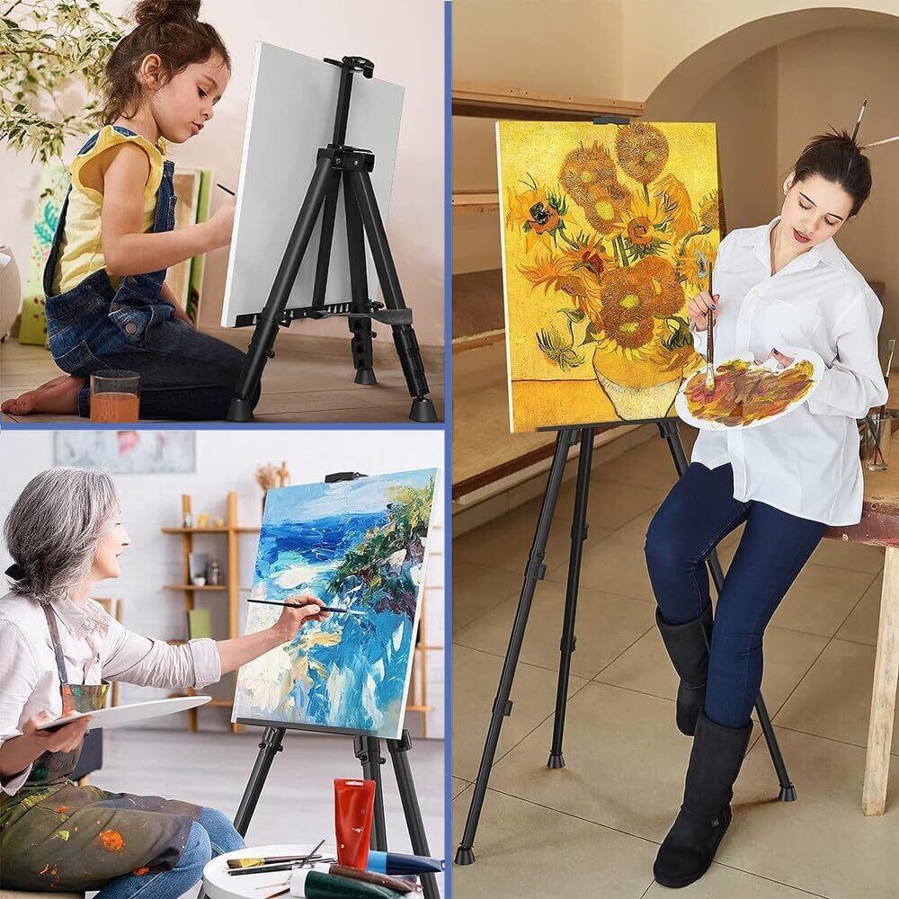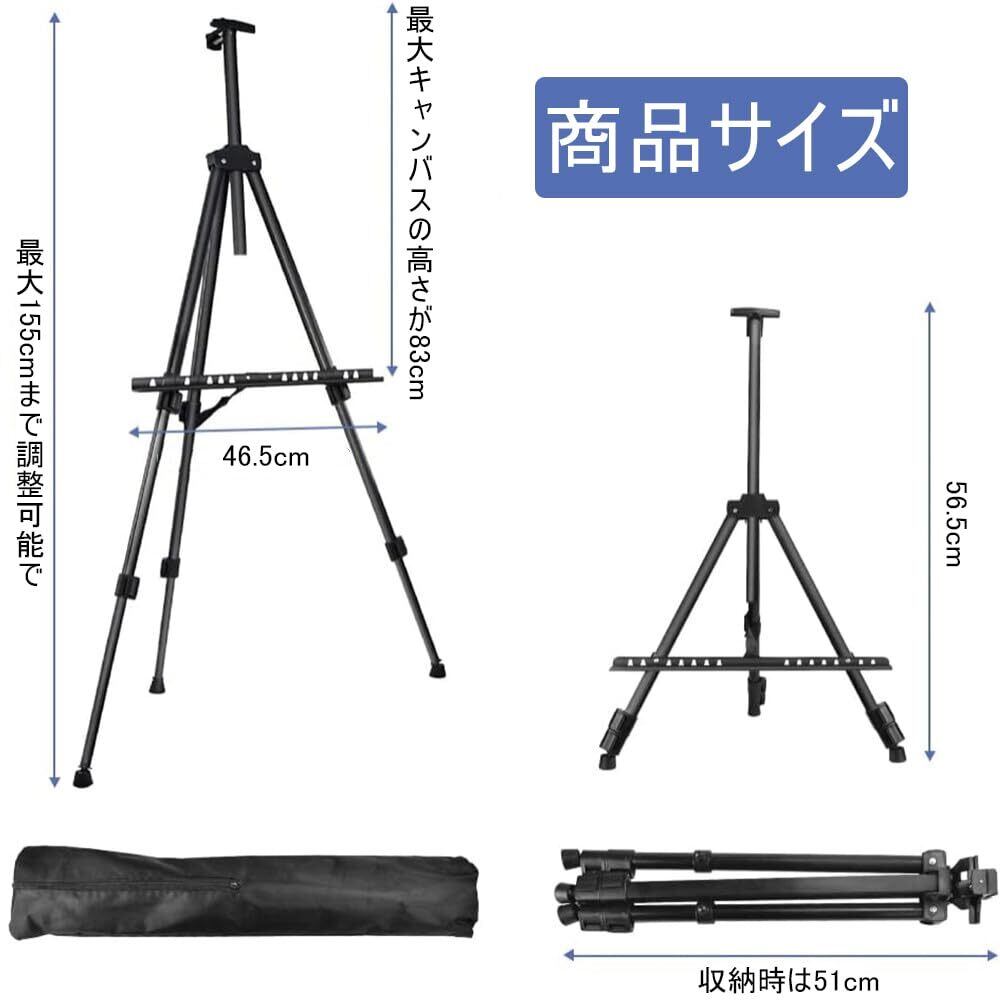 メタルイーゼル 折りたたみ 51-155cm 高さ調節3段式 三角イーゼル 軽量 高い安定性 装飾 描画 スケッチ 看板 絵画 展示 ポスター 収納袋付き