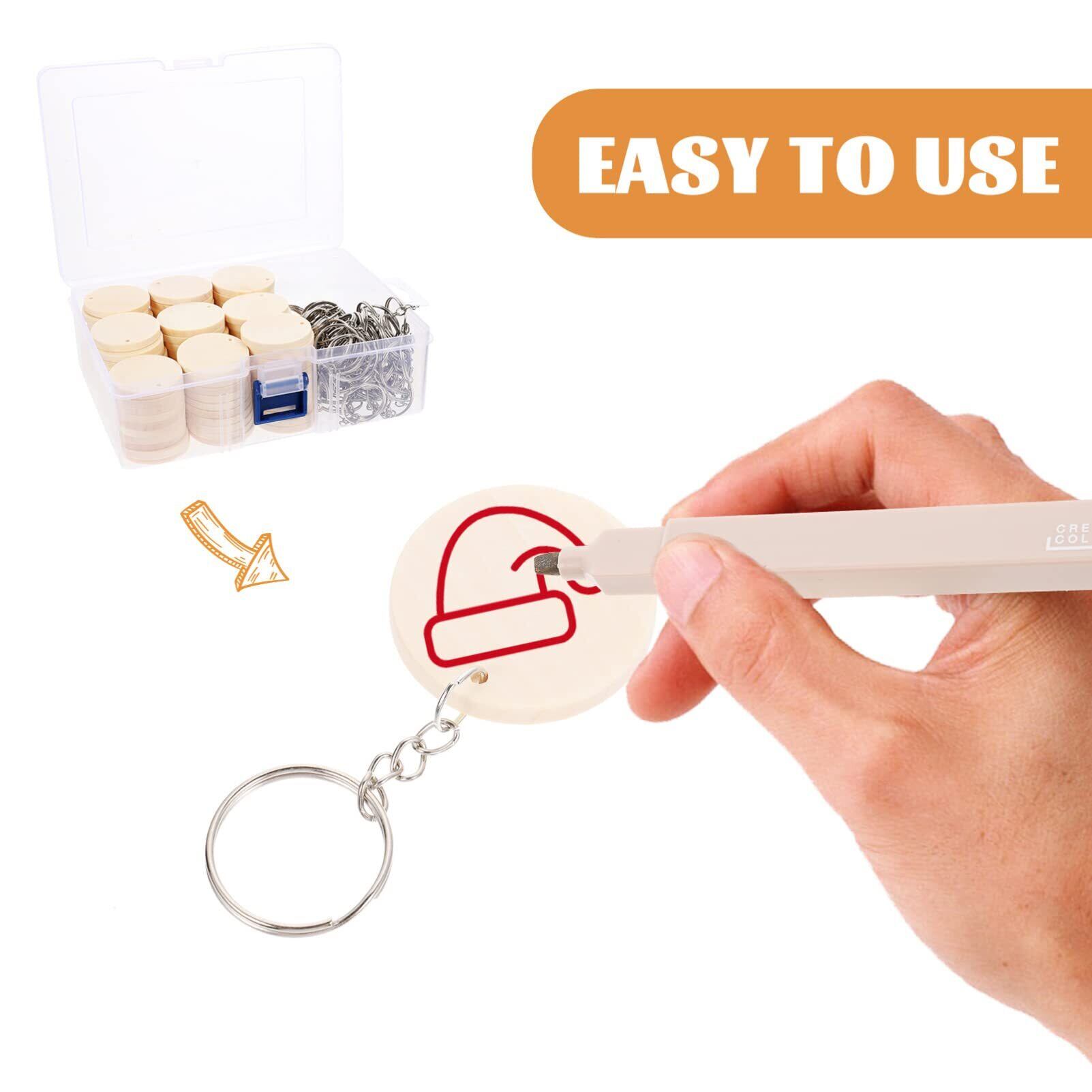 WINOMO 木製キーチェーン 100個セット 直径3.5 cm 丸形 DIY手作り 装飾用木材チップ 多機能 キーリング 装飾ペンダント 工芸品 キーホルダー付