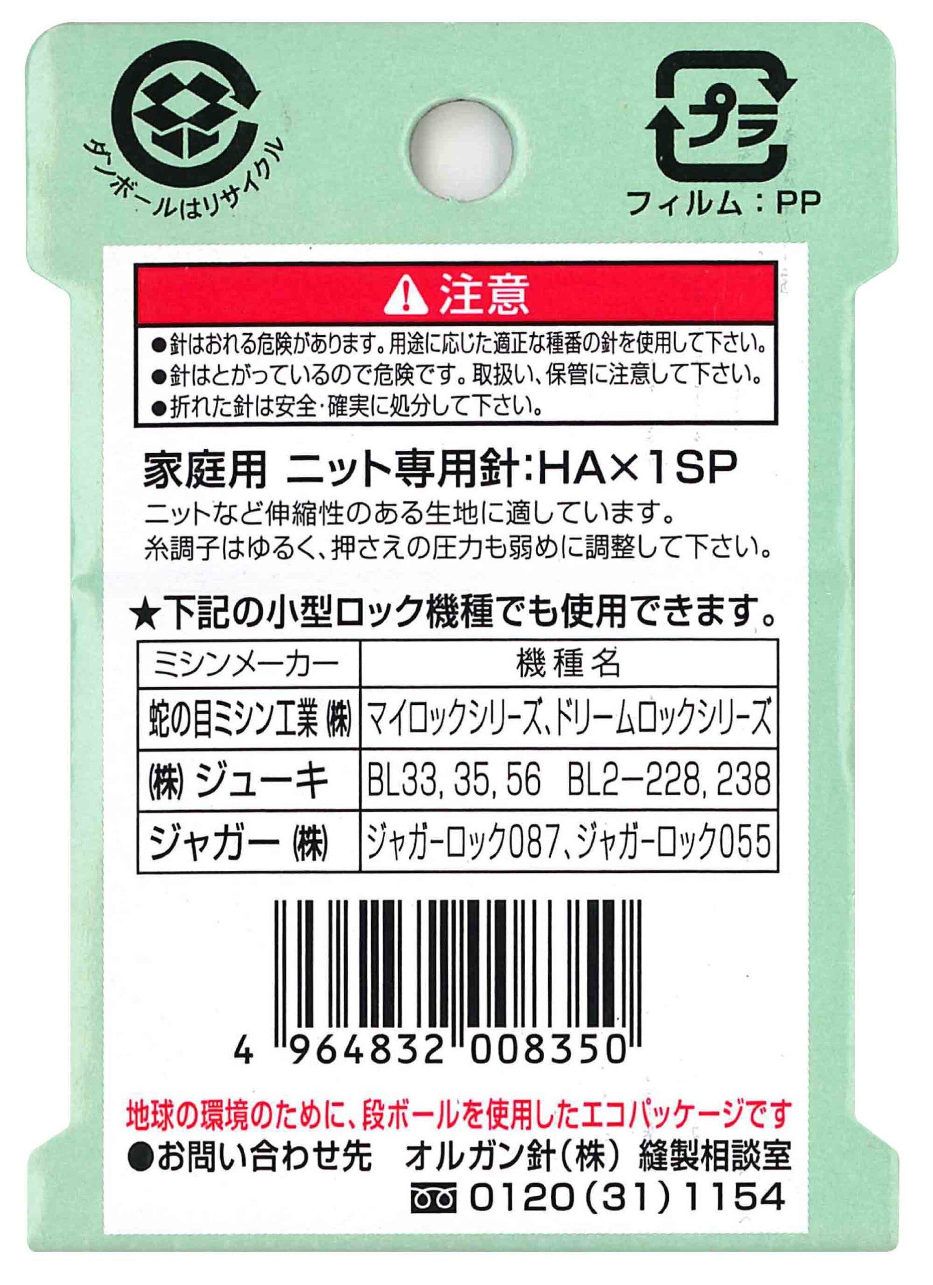 オルガン針 ORGAN NEEDLES 家庭用ミシン針 HA×1SP #14 中厚地用ニット専用