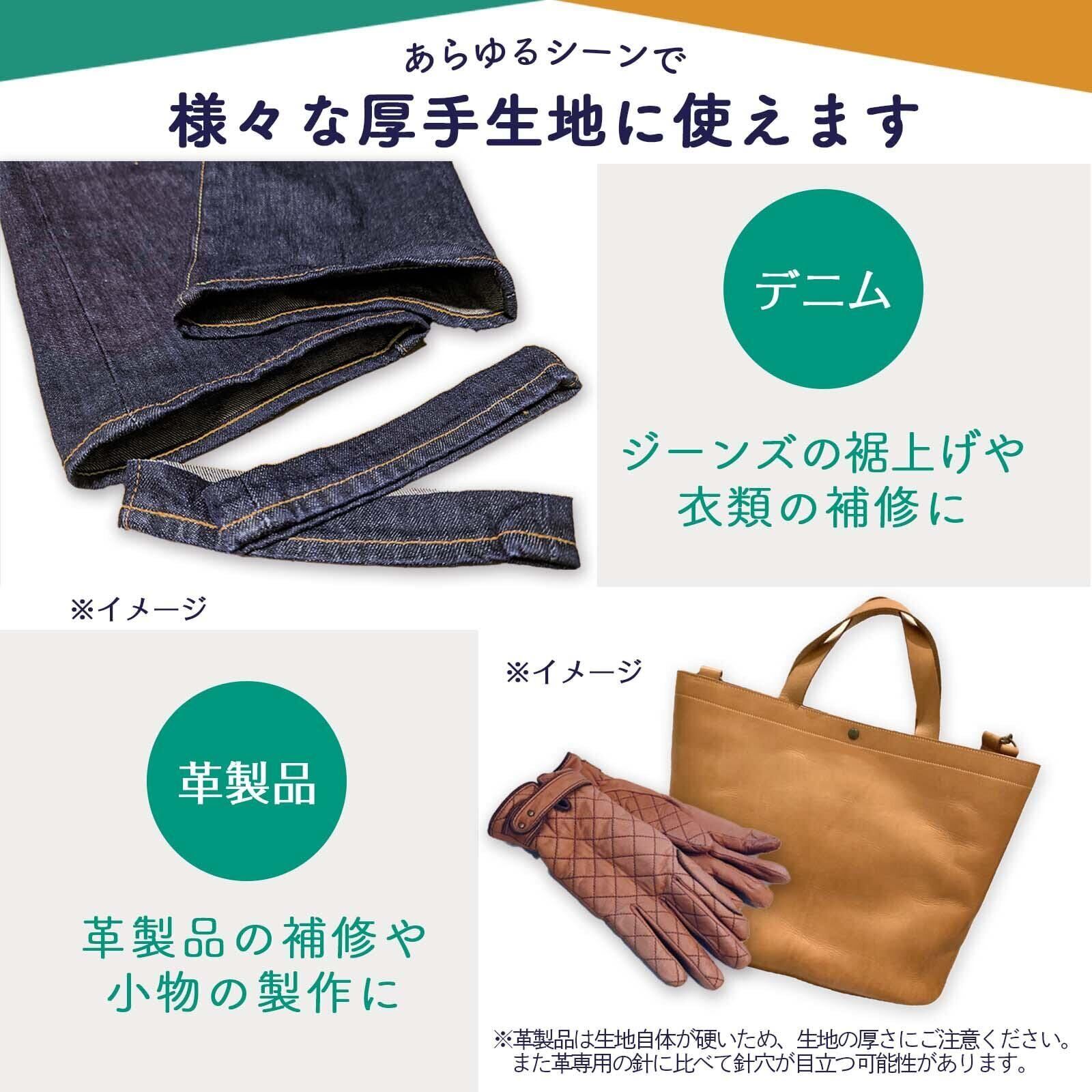 デニム・帆布・キルティングなどの厚手生地を縫うのに適した家庭用ミシン針。