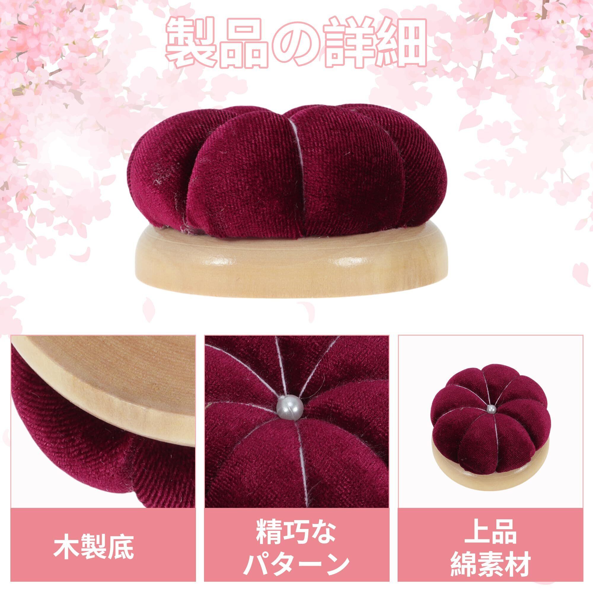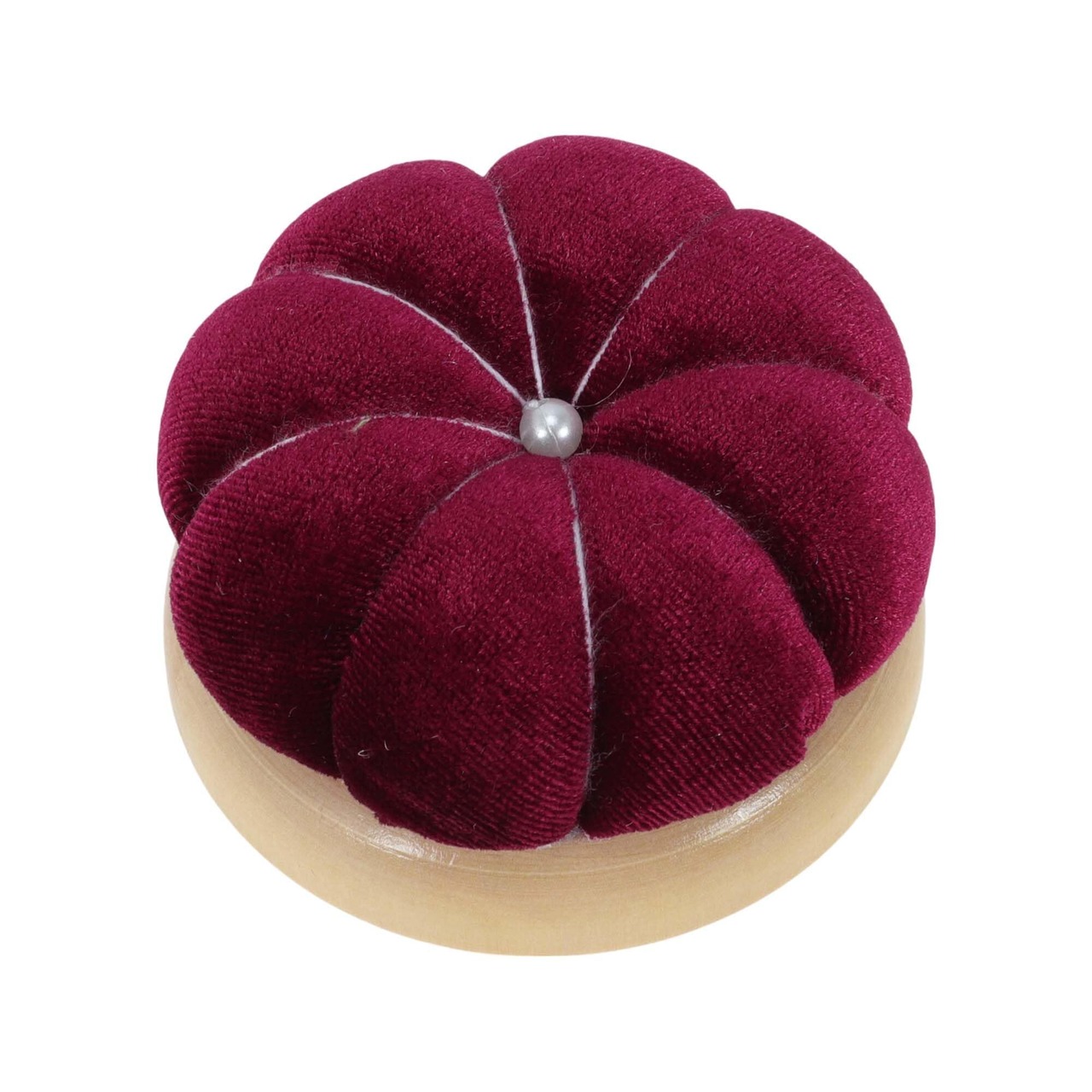 CAPASTEC ピンクッション 木製ベースの針ピンクッション ソーイング針ホルダーやDIYクラフト用のパンプキンラウンドピンクッション ディープレッド