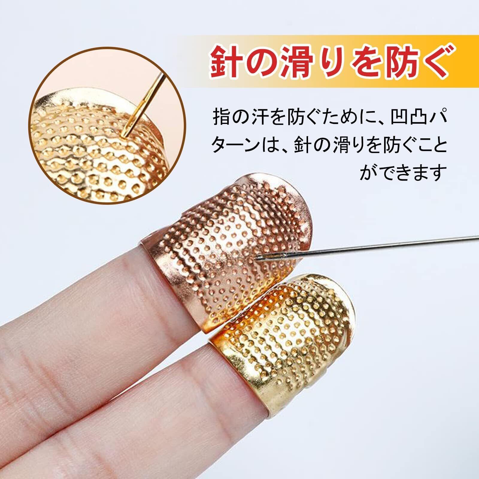 【高品質な真鍮素材】 指ぬきは高品質な真鍮材料を採用しており、 長く持ち、さびにくいです。耐久性と強度もありますので、折れにくく、長い間利用しても、大丈夫で頑丈です。この金属製の指ぬきを使えば、針の尾を押すことで、衣服を貫通するために使用される指に力を加えやすくすることができます。また、一つの包装には二つのサイズがあります。一つのSサイズと一つのMサイズがあり、合計4個セットです。ほとんどの指のサイズに適しています。