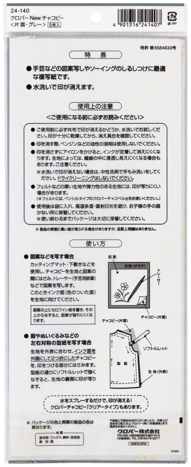 ・【お手頃で高品質】 今なら特別価格でのご提供中!手軽に購入できるので、この機会にぜひ「Clover Newチャコピー片面・グレー 24-140」を手に入れて、手芸・洋裁ライフをもっと充実させましょう!