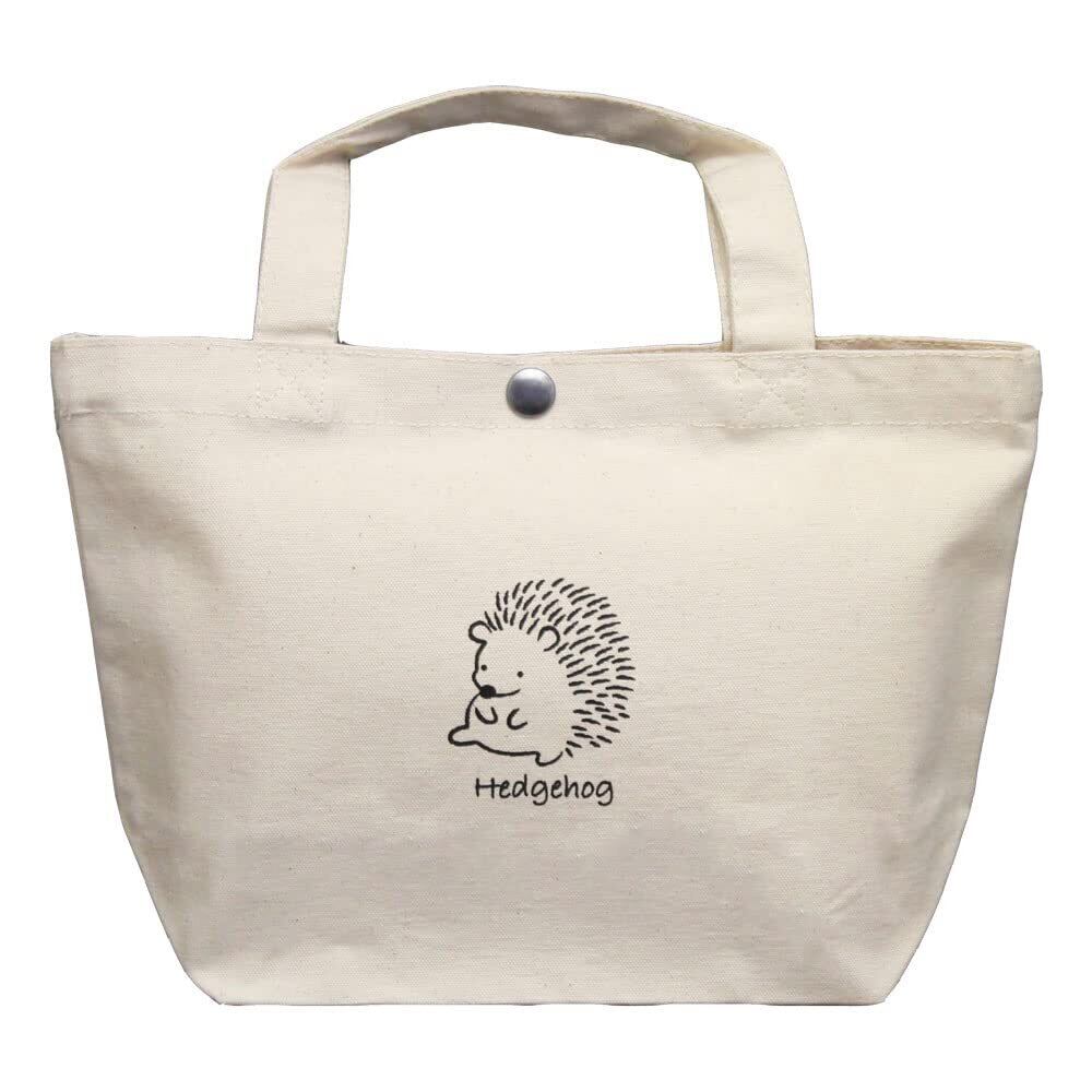 ゆるかわいいハリネズミ柄のキャンバストート付き裁縫セットです。ストッパー付きのハードケースを、スナップボタン付きのバッグに収納するので、道具が飛び出す心配がありません。