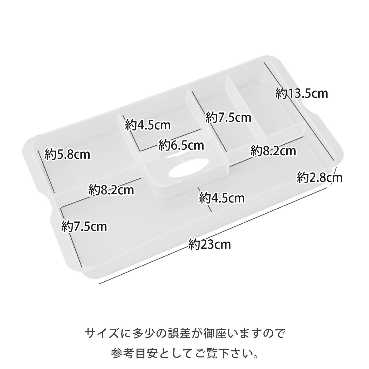小物の収納に便利な仕切りトレイ付き。半透明のクリアトレイで小物も収納しやすく、下に入っているものも見えやすいようになっています。