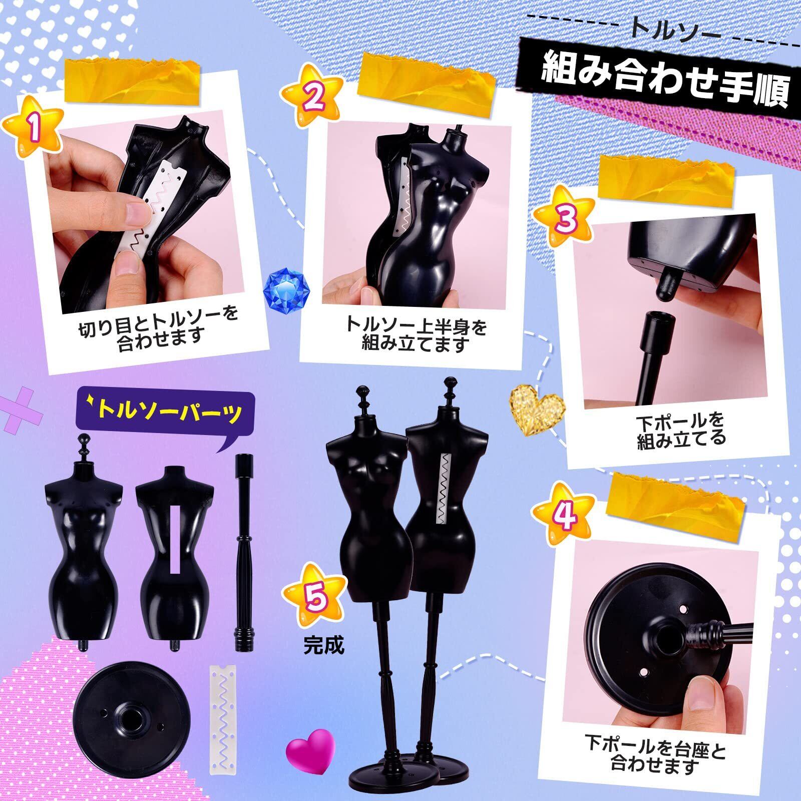 縫わない 洋服デザインキット トルソー6個セット メイキングトイ 手芸キット 洋裁 手作りキット 裁縫 おもちゃ 子供 高学年 小学生 女の子 プレゼント 誕生日 ギフト(パターンとマニュアル付き)