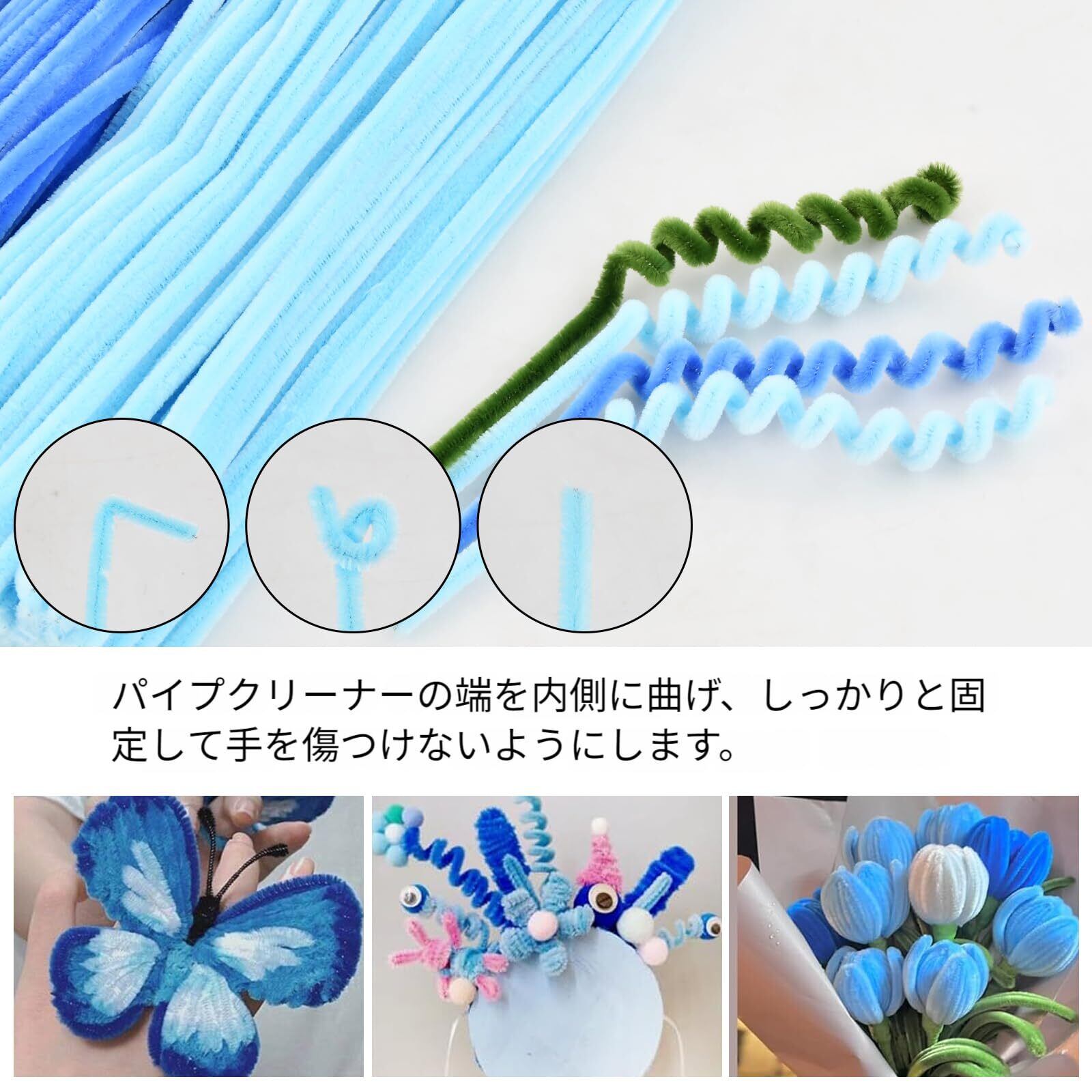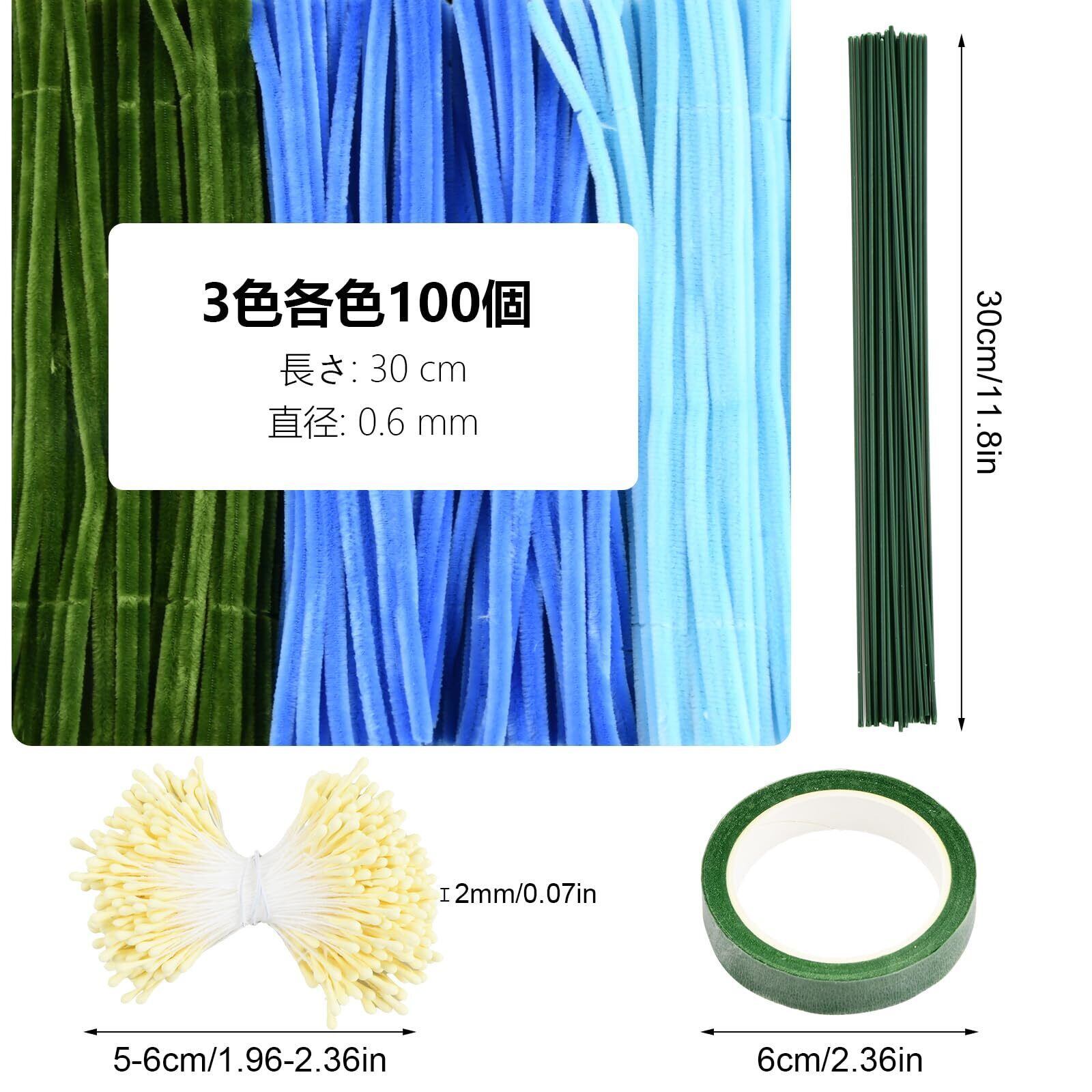 手芸モール 工作 モール セット モール 造花 作成キット カラーモール 300本 花束 手作りキット 手芸素材 造花の茎 20本入とフラワーテープ 緑2巻と造花のおしべ約400個付き DIY 飾り物 学校 手芸用 誕生日 母の日 バレンタインデー 贈り物 (ブルーセット)