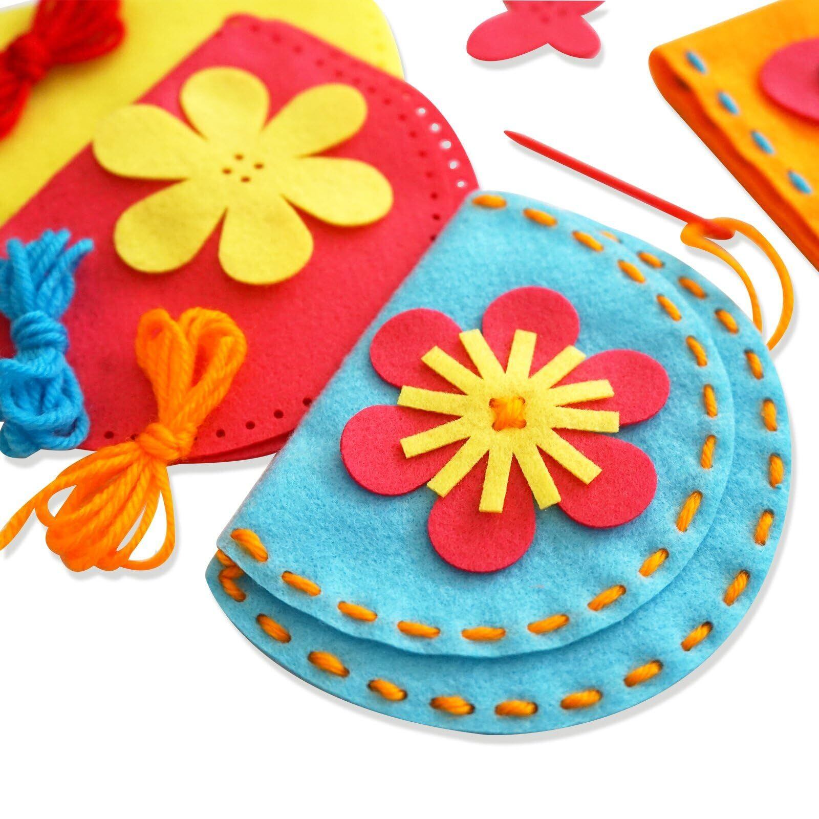 自分でデザインして作るポーチ 内容:フェルトポーチ、飾りパーツ、毛糸、子供用安全縫い針 x6セット*1セット毎個装