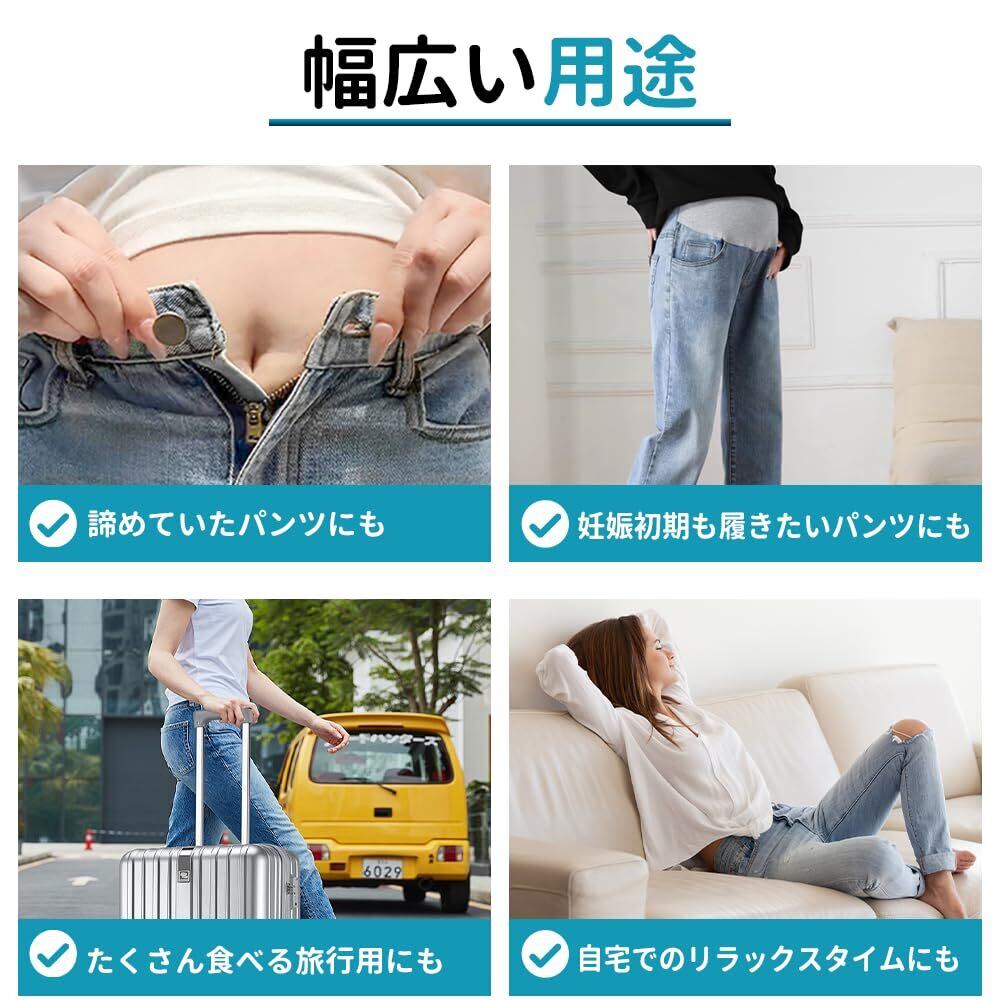 【幅広い用途】ウエストを調節できるだけでなく、さまざまな方法で組み合わせることもできます。ウエスト調整、ボタンは、縫製・裁縫・工具が不要、簡単取り付けて使用できるズボンのウエストを広げるためのアイテムです。軽量でコンパクト、旅行・トラベル、お出かけ、お食事、出張など、何処へでも気軽に持ち運べて使用できます。シンプルなユニセックス デザインは女性、男性、ティーンエイジャー、ジュニアから大人まで幅広くご利用いただけます。ズボンだけではなく、ドレスやスカート、ダウンジャケット、ジャケット、オーバーオール、ウールコートなどボタン取り付けタイプの衣類にも使用可能です。