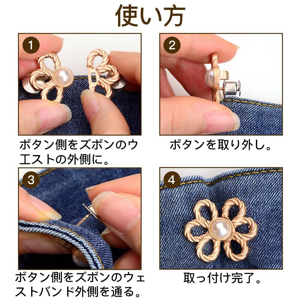・【6個入りの便利なセット】 この商品には、花の形をしたウエストバックルボタンが6個含まれており、ジーンズやスカートなど、さまざまなファッションアイテムに対応しています。