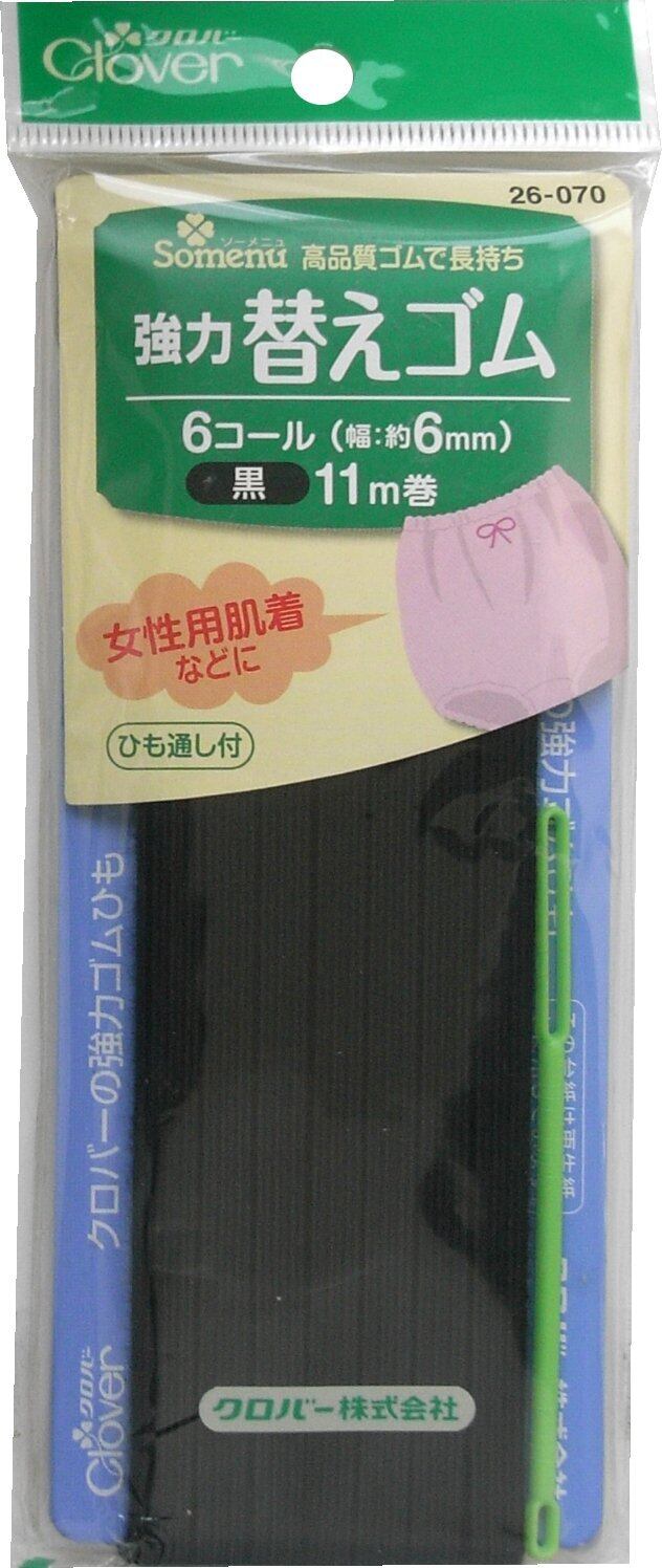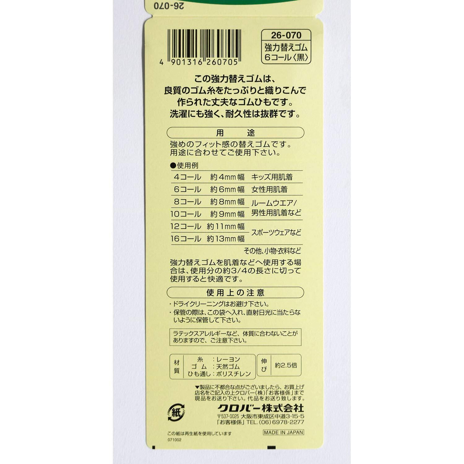 「Clover 強力替えゴム」は、6コールの高品質な替えゴムで、シックな黒色が特徴です!様々な用途に応じた強力な伸縮性を提供し、手芸やDIYプロジェクトに最適です。