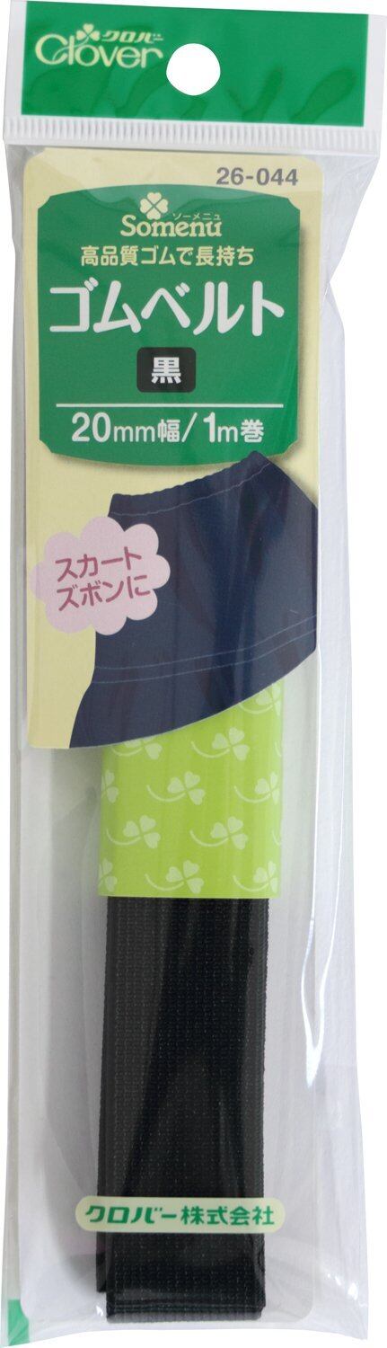 【新着商品】Clover ゴムベルト 20mm幅 黒 26-044