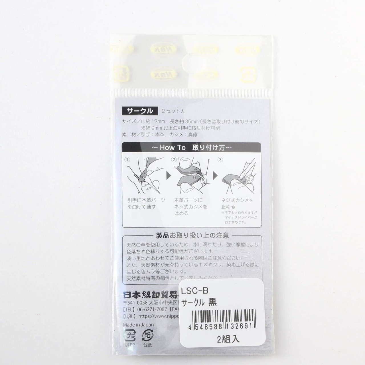 日本紐釦貿易(Nippon Chuko) NBK 本革 ファスナー引き手パーツ サークル型 ネジ式カシメ付き 約17mm×35mm 黒 LSC-B