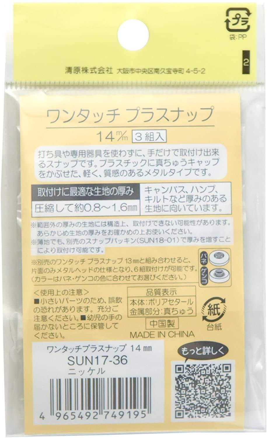 KIYOHARA サンコッコー ワンタッチプラスナップ メタル 3組入 14mm ニッケル SUN17-36