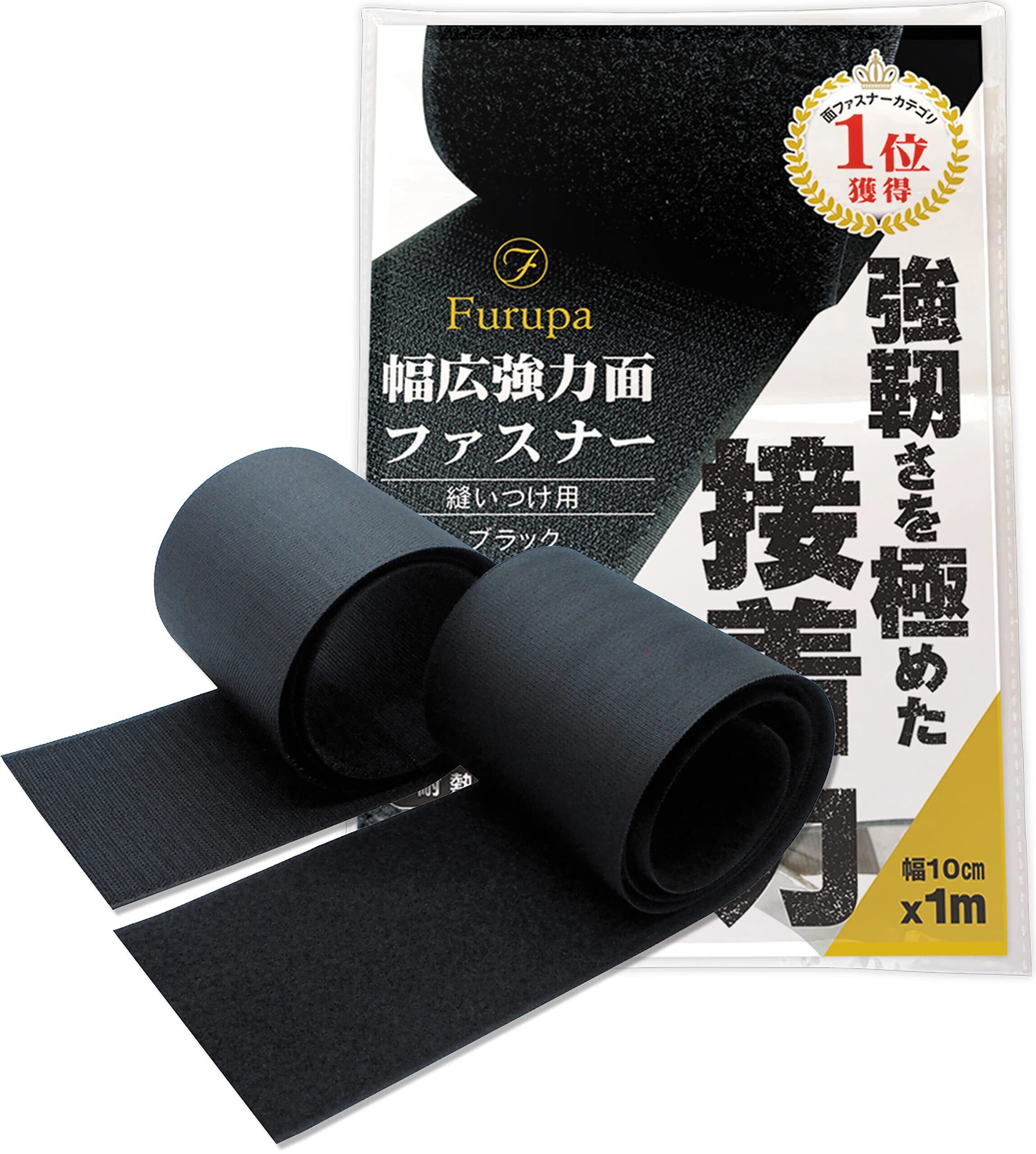 【在庫処分】Furupa 手芸用の幅広強力面ファスナー 幅10cm×1m 黒 裁縫用 サバゲー オスメスセット